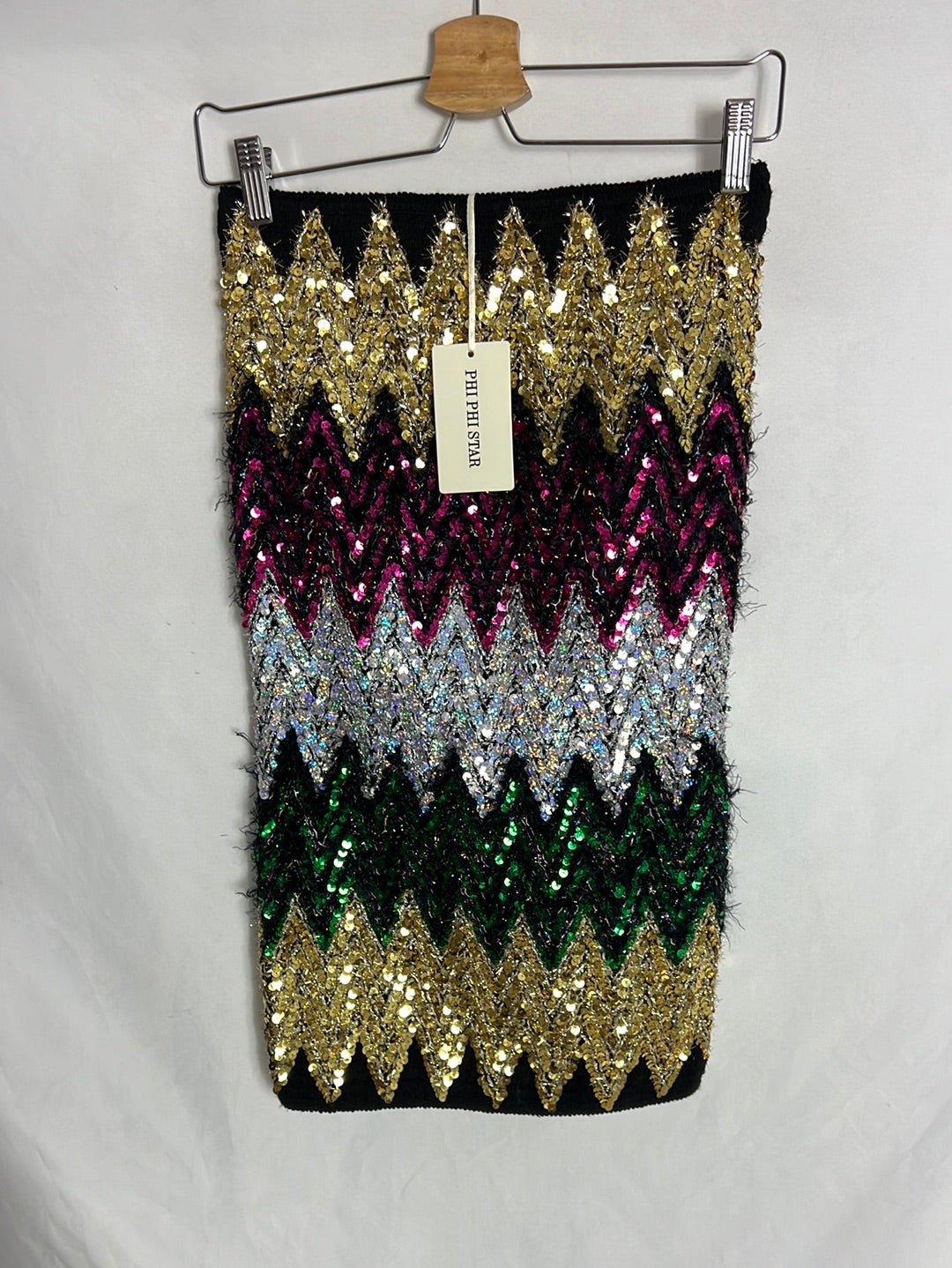 PHI PHI STAR. Falda midi tubo lentejuelas. TU (S)