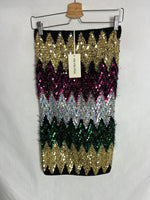 NUEVO CON ETIQUETA. Falda midi tubo lentejuelas colores. Tejido semi elástico. Cintura 34cm y largo 63cn
