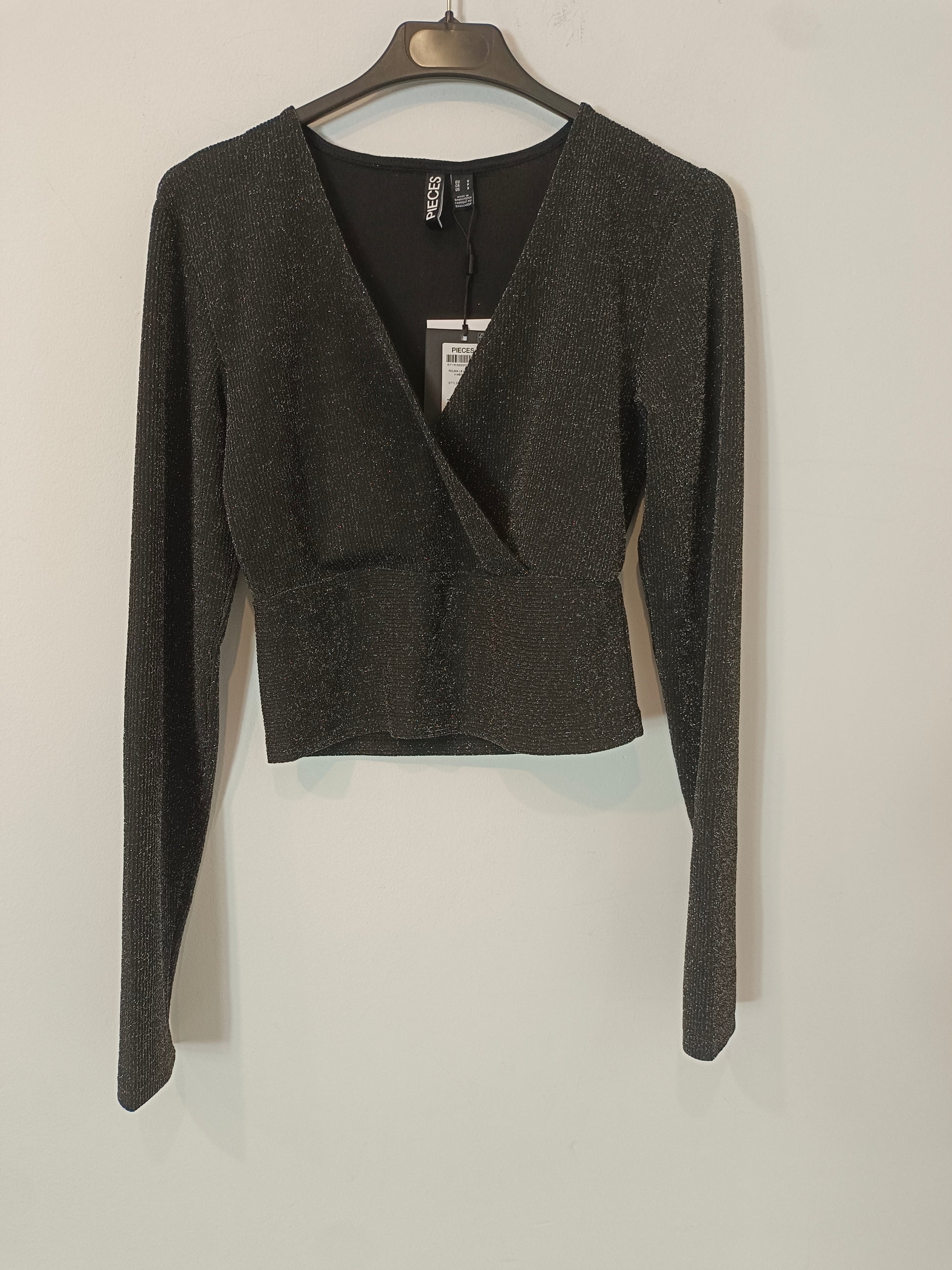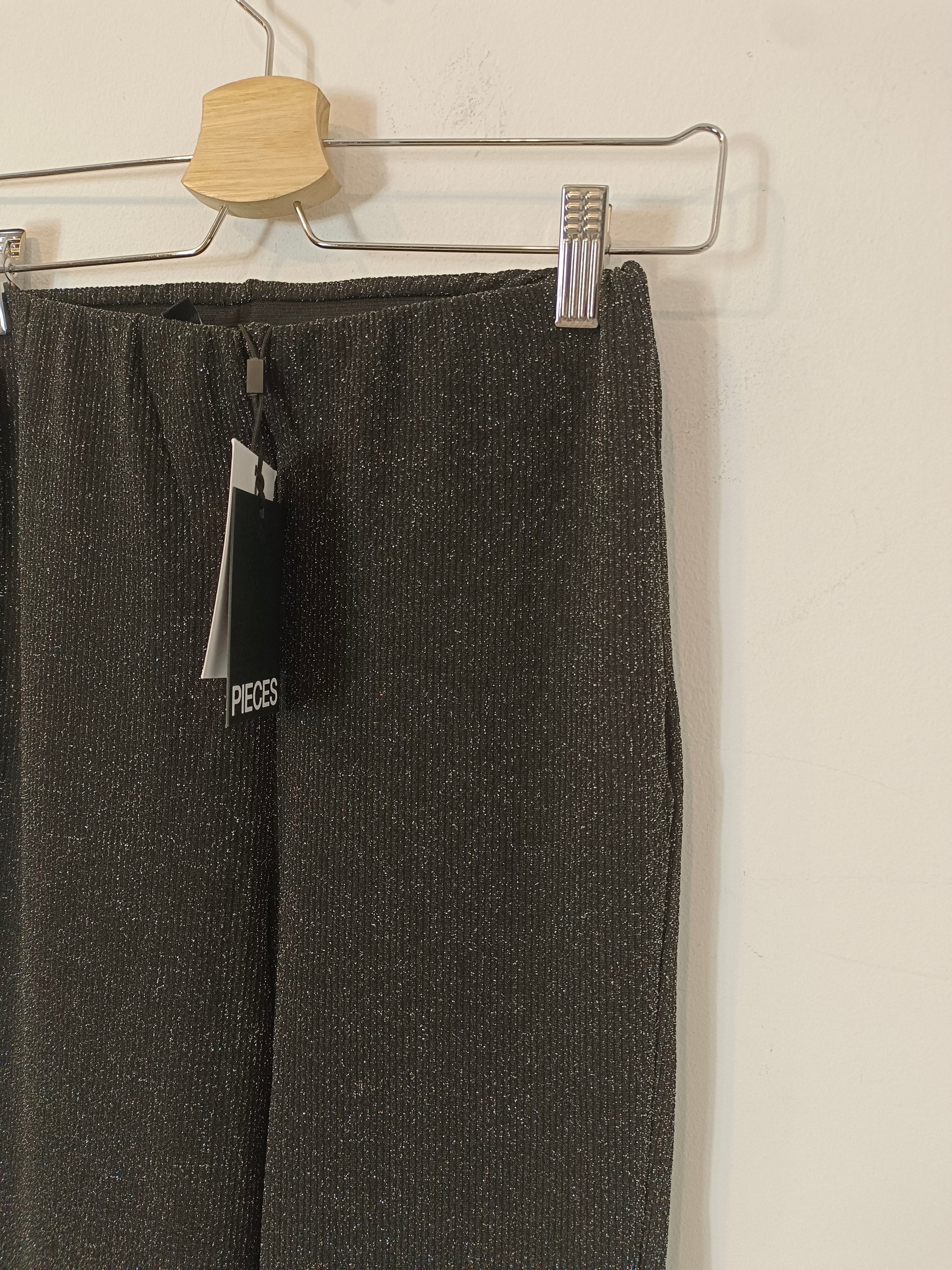 NUEVO CON ETIQUETA. total look negro con detalle de hilos metálicos. Top escote cruzado y pantalón con abertura en la parte de abajo. Albos tejido elásticos