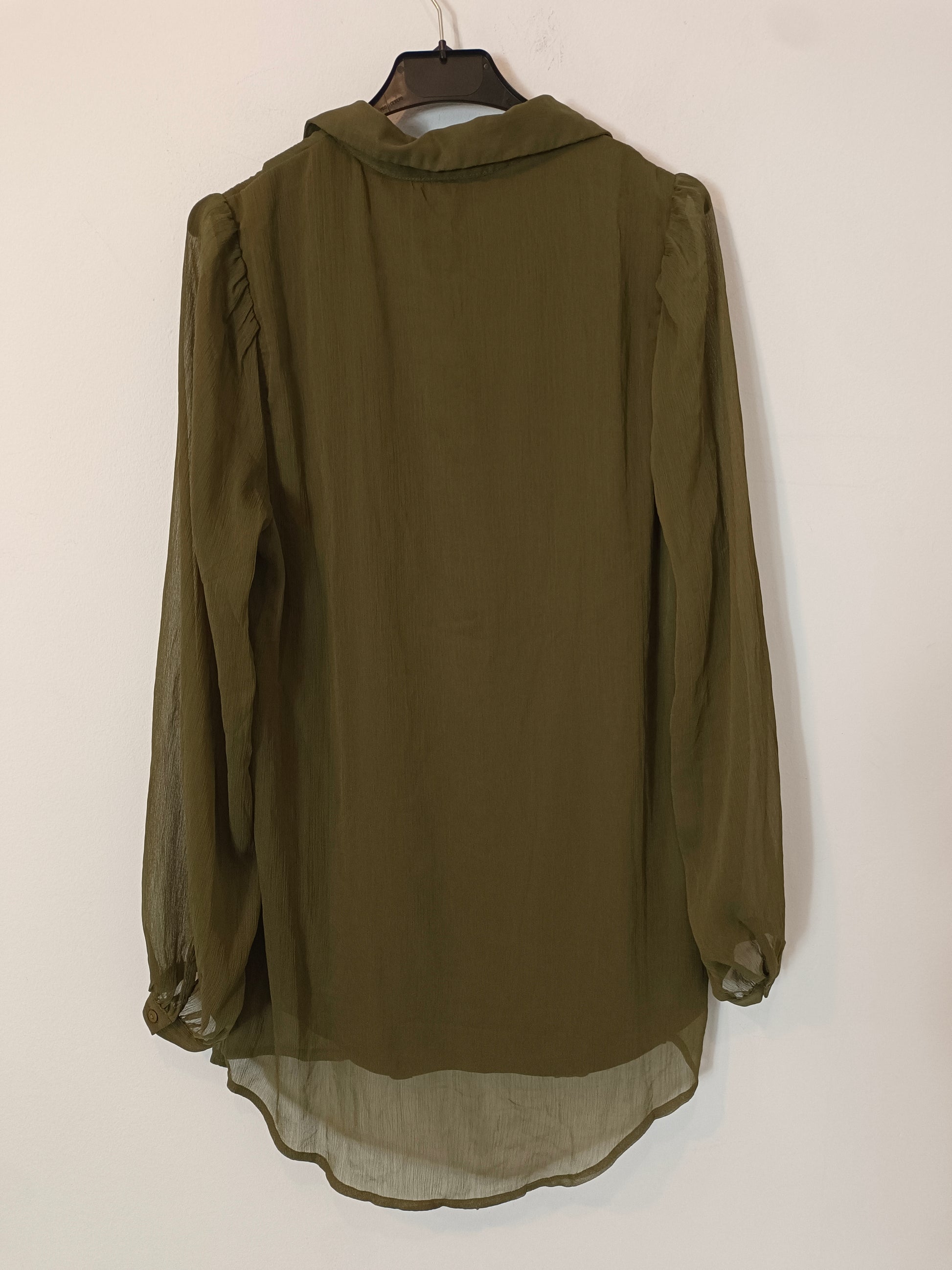 NUEVO CON ETIQUETA. blusa fluida verde abotonada con las mangas semitransparente. de sisa a sisa cm largo cm