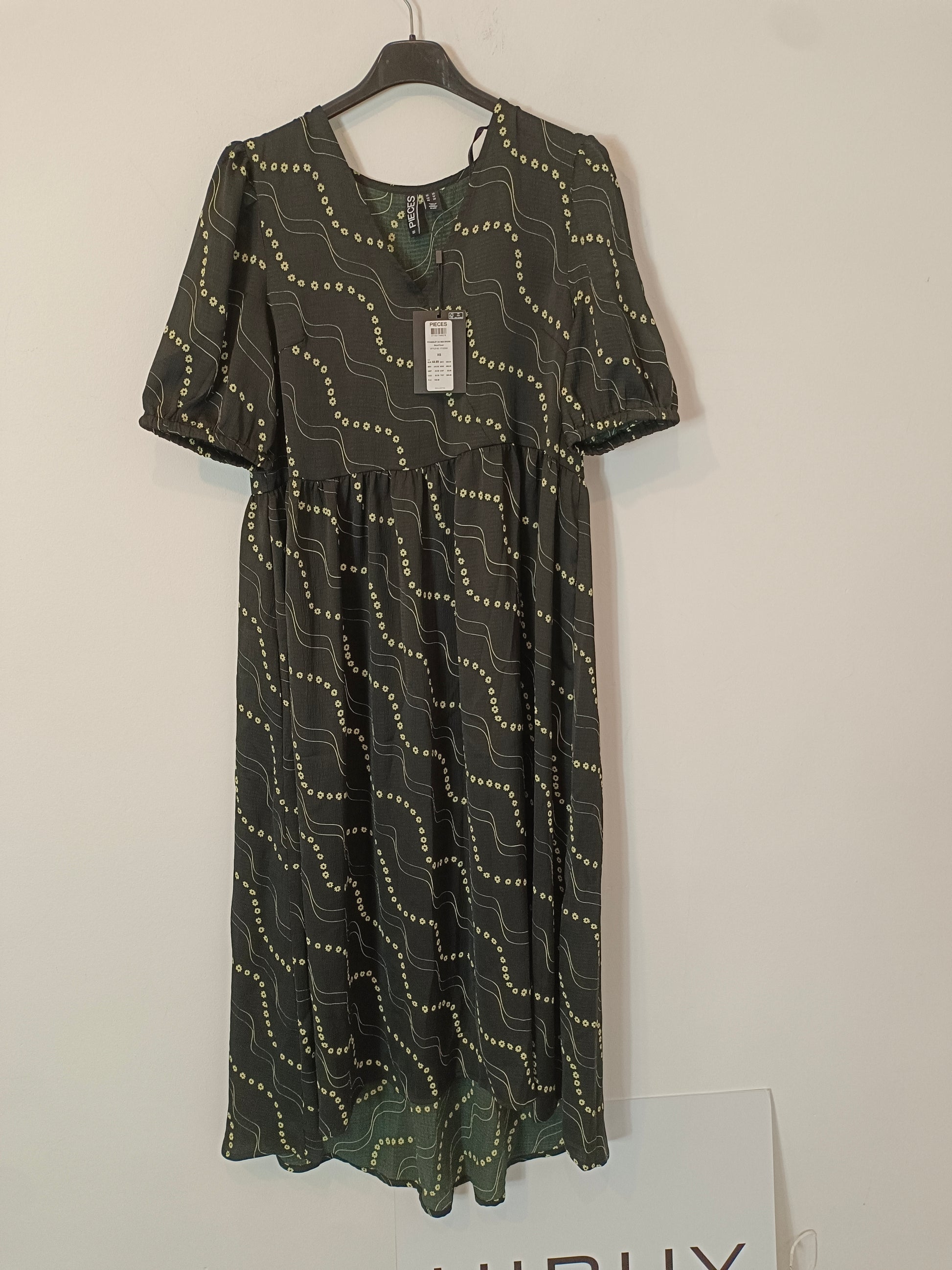 PIECES. Vestido fluido negro flores T.xs