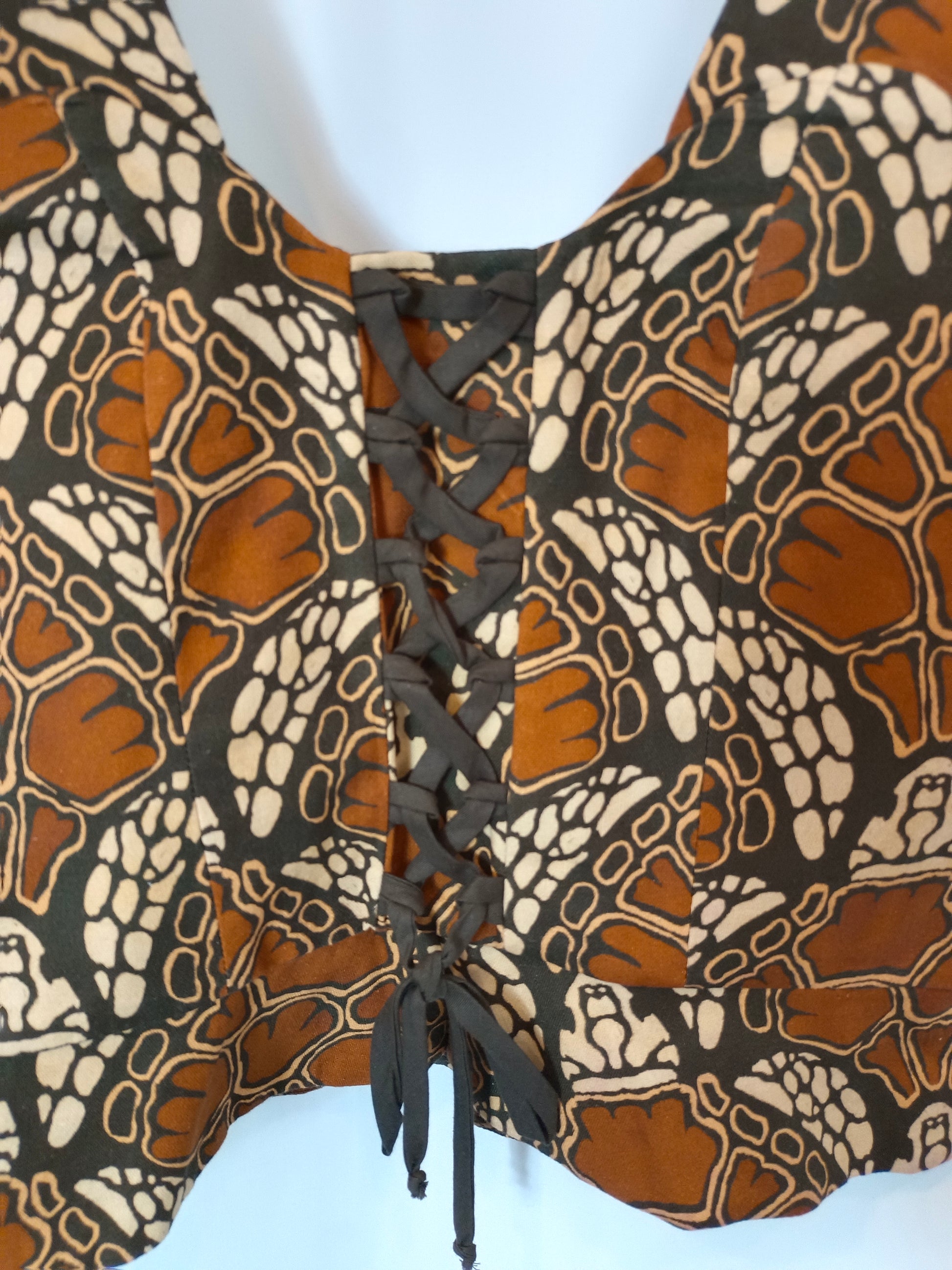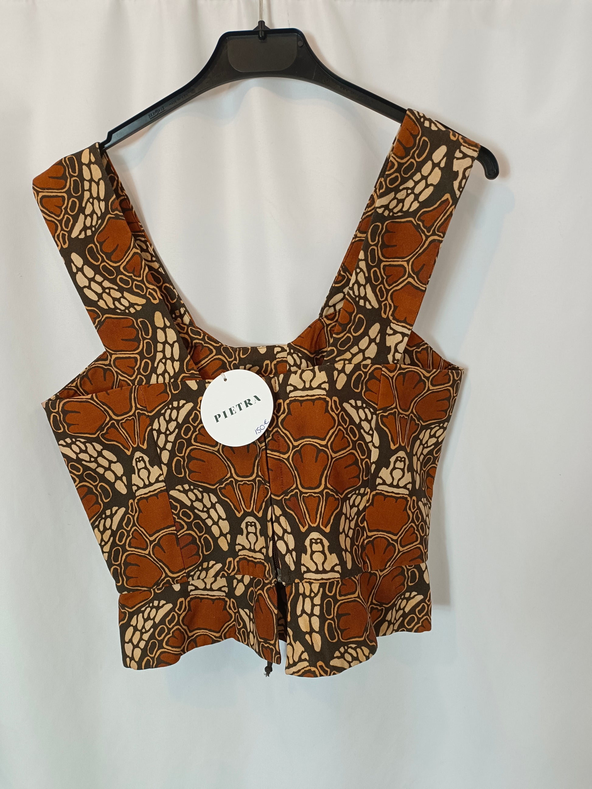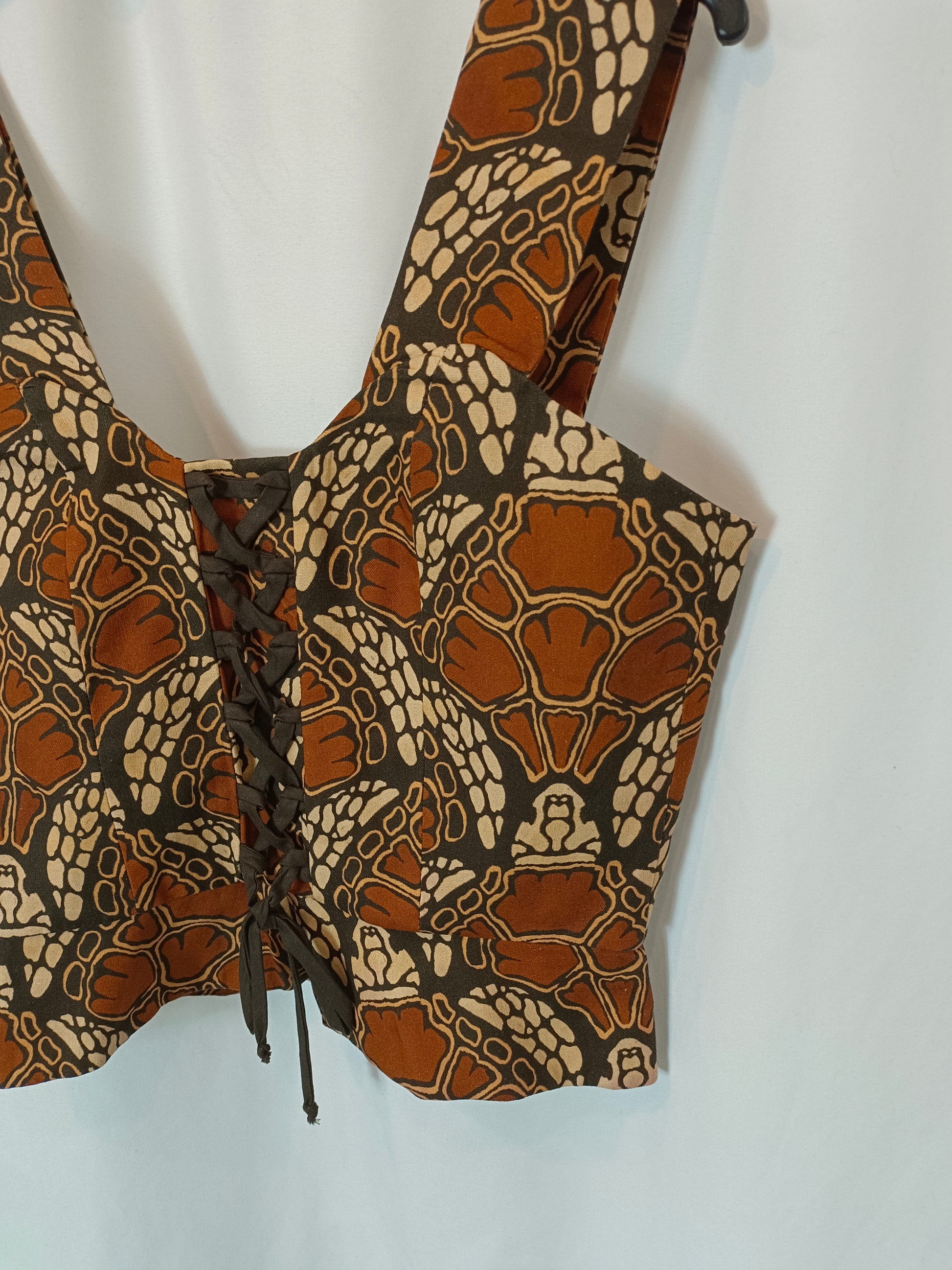NUEVO CON ETIQUETA. Top estampado efecto africado con cuerdas. Efecto corsé con cremallera en la espalda