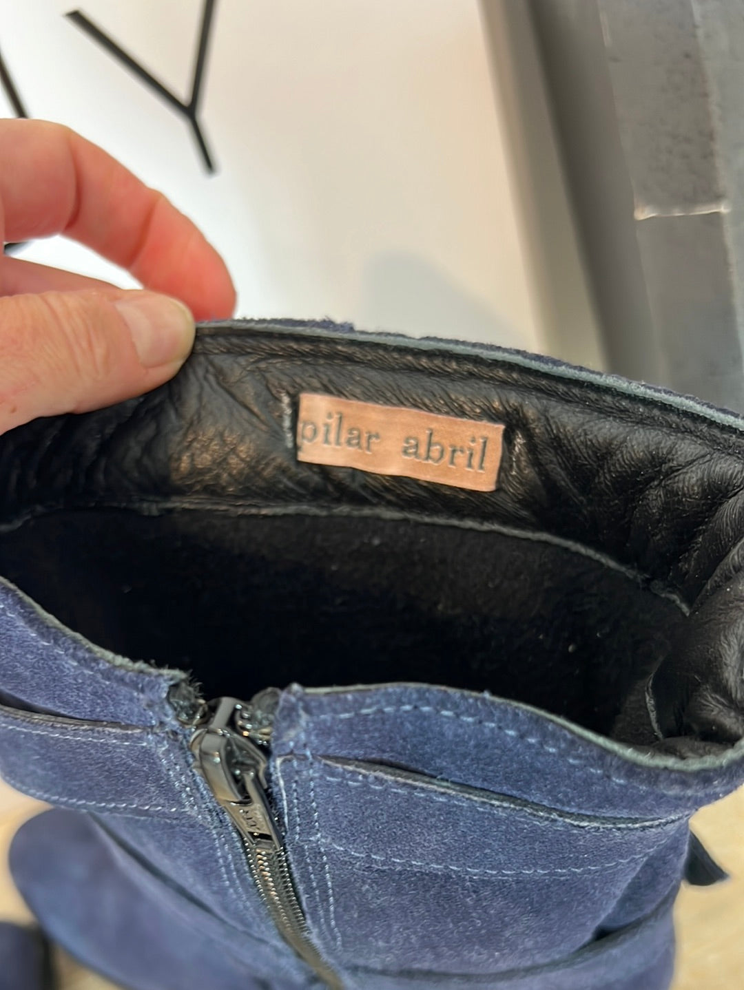 PILAR ABRIL. Botas piel vuelta azul hebillas. T 39