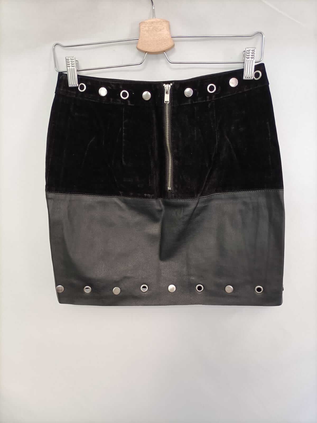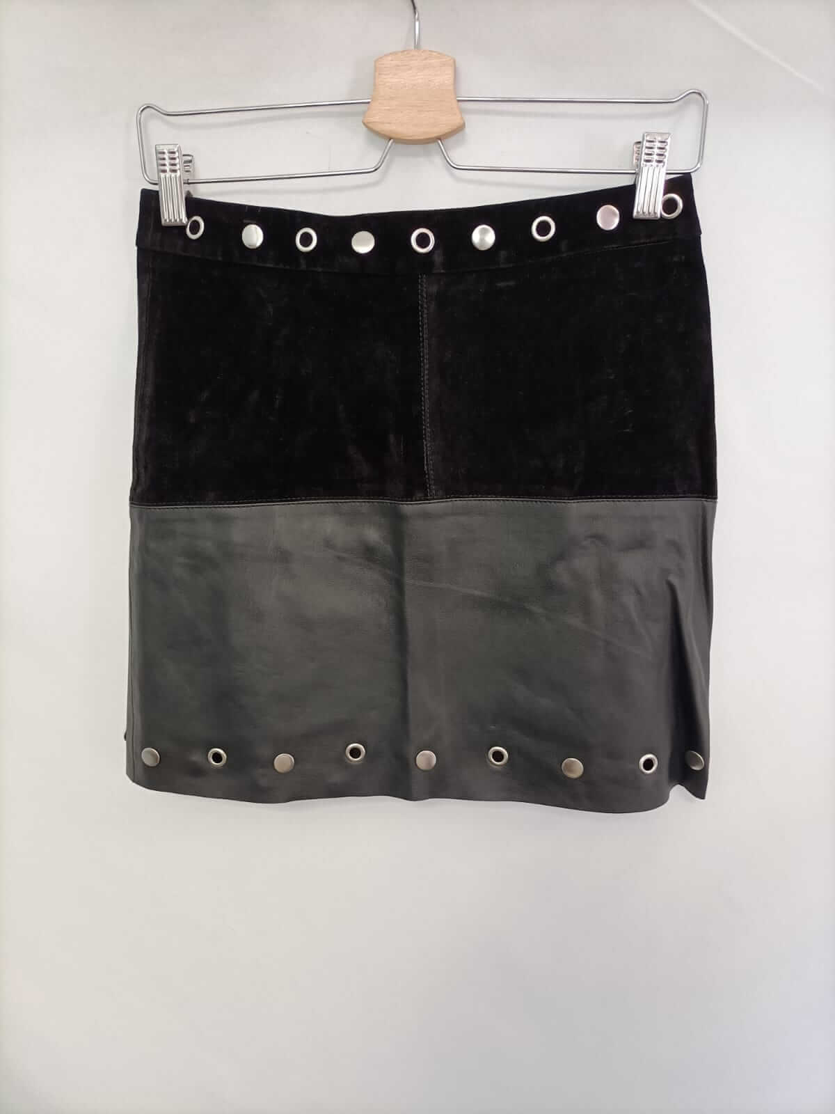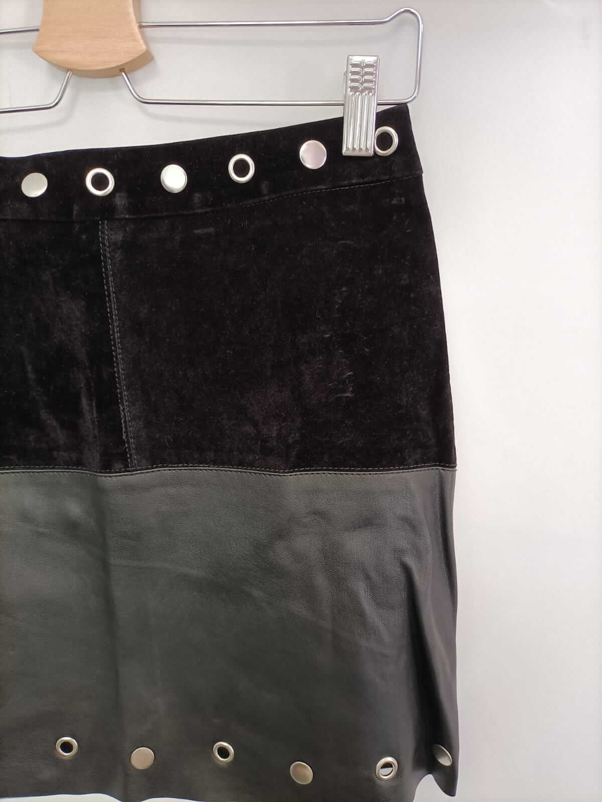 Pimkie. 34. Falda doble textura polipiel y antelina. Detalle de tachuelas plateadas. No elástica. Cintura 36 cm largo 41 cm