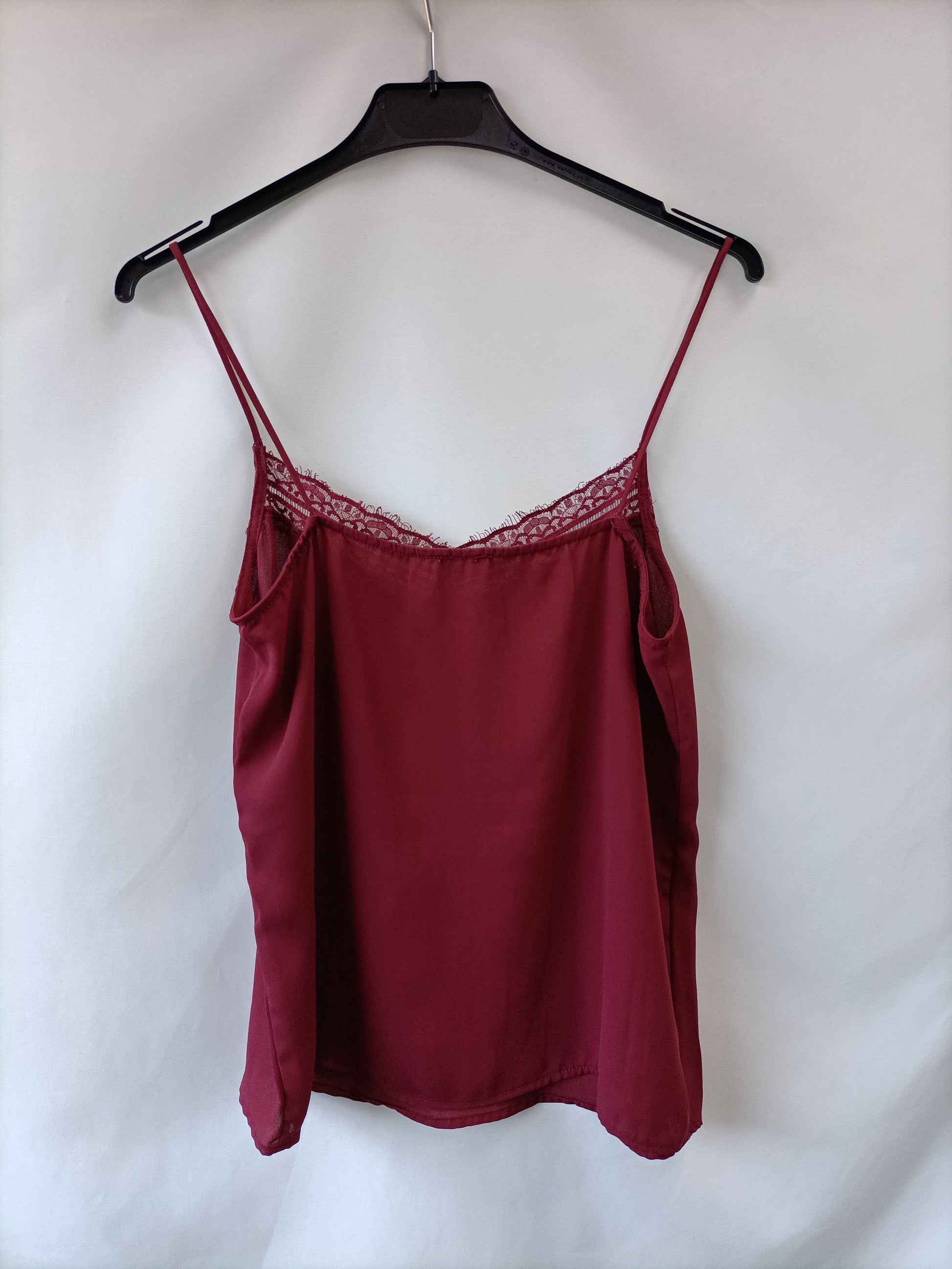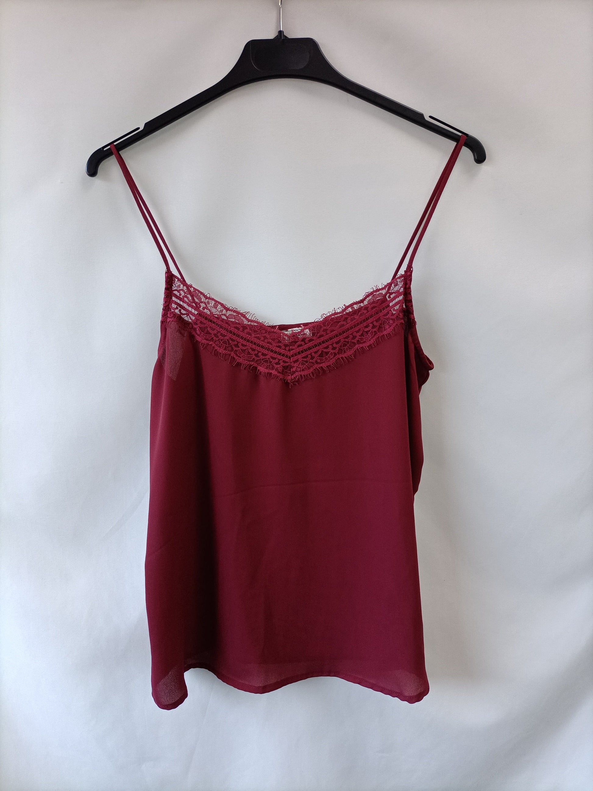 Top lencero Burdeos con encaje en el Escote. De sisa a sisa 40 cm Largo 57 cm