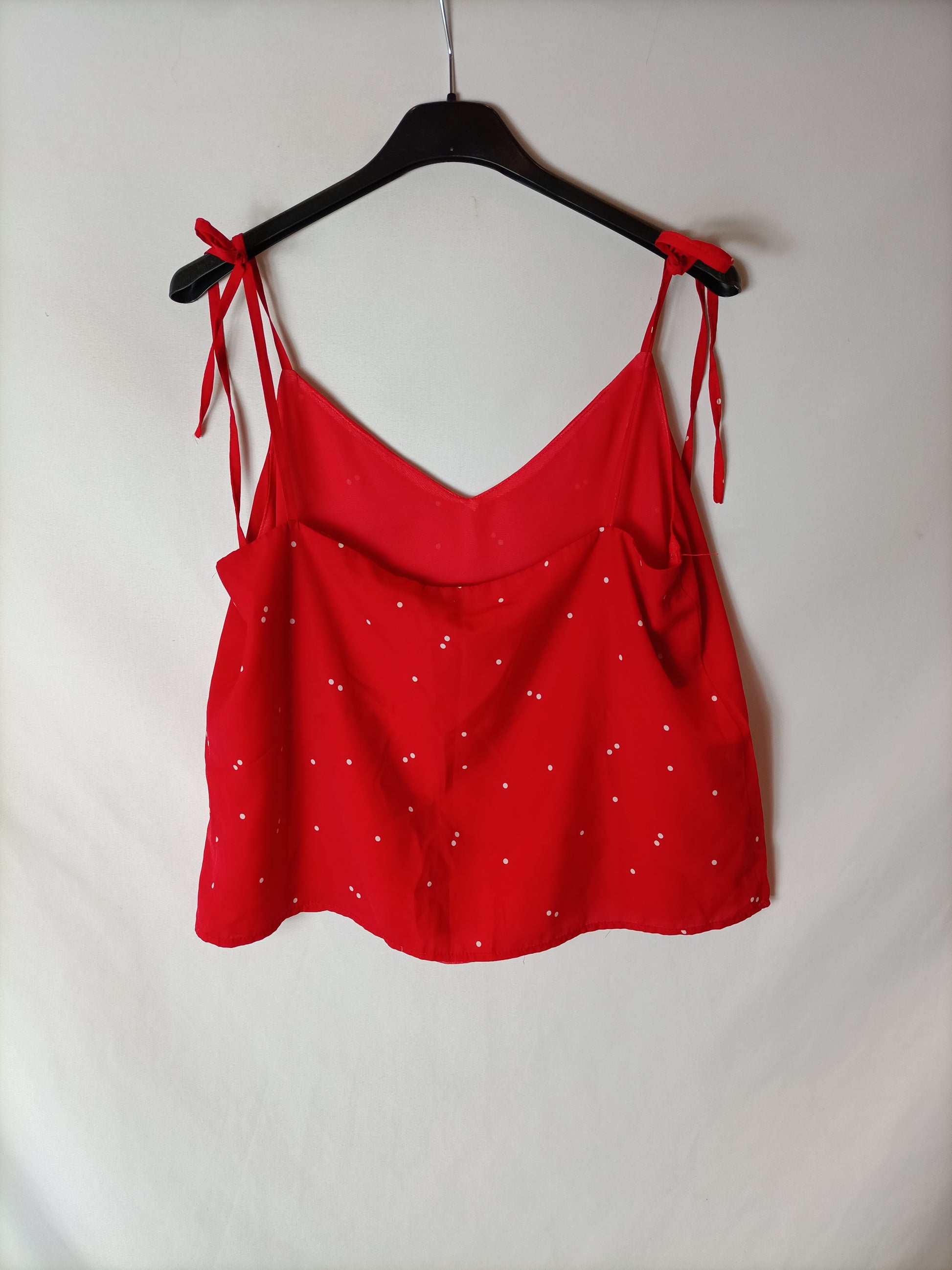 top rojo fluido con lunares blancos. tirantes ajustables.