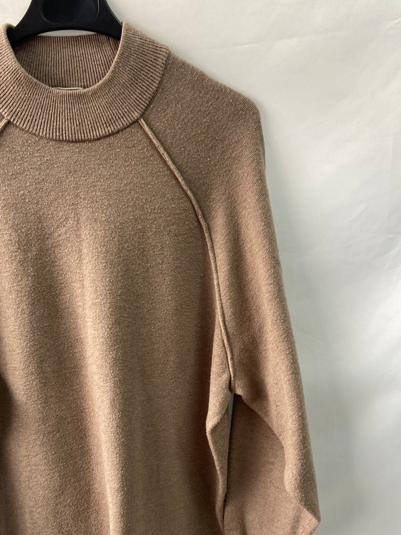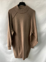 vestido corto beige de punto cuello de tortuga .largo 91 cm.
