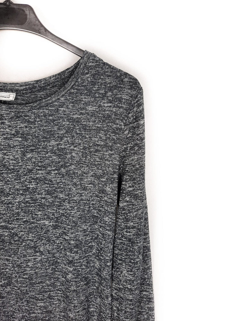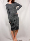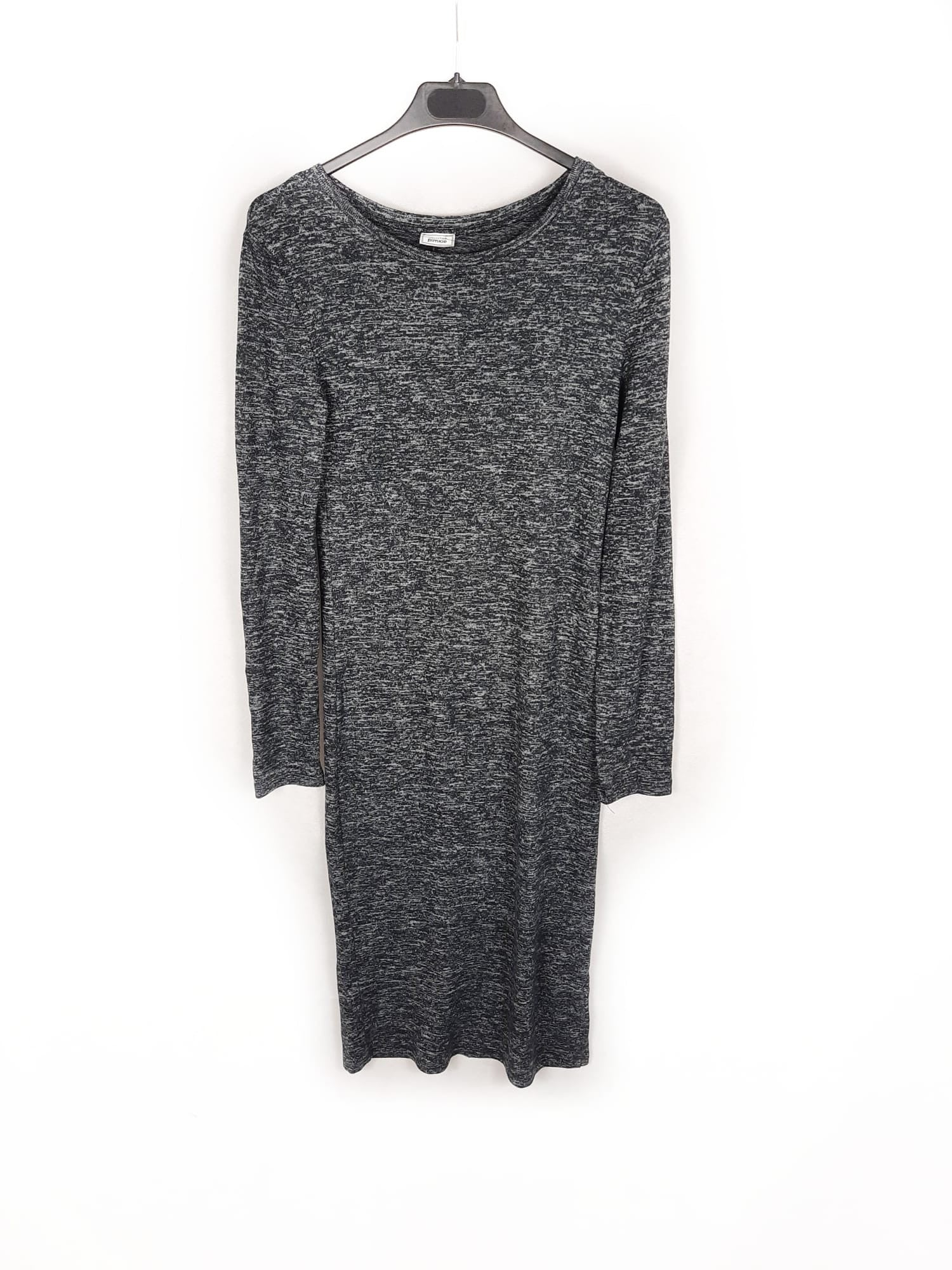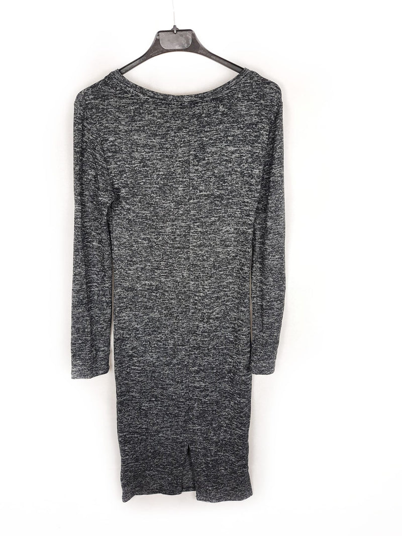 Vestido midi gris jaspeado elástico. Mini apertura en la parte de detrá. Largo 108 cm