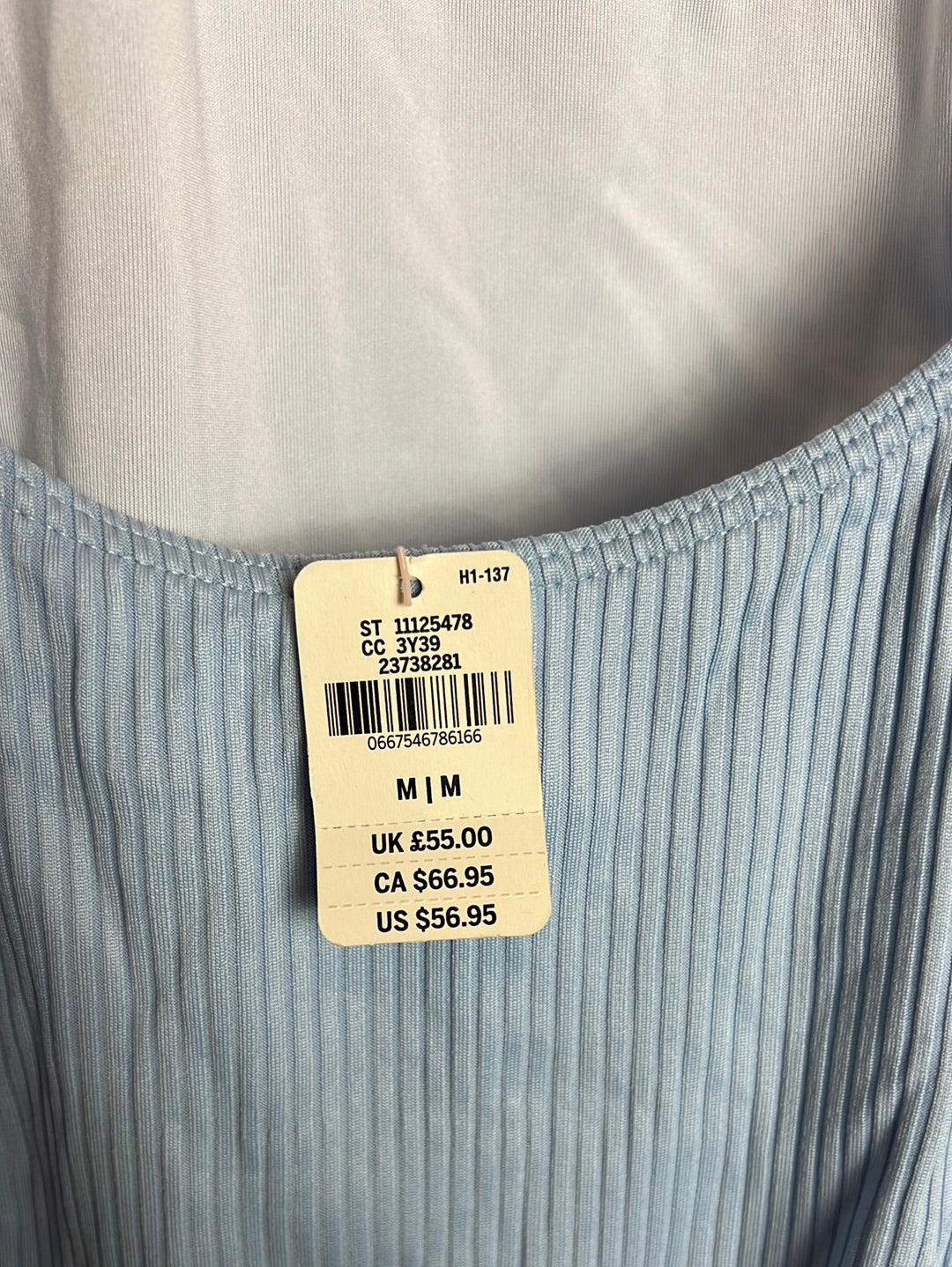 NUEVO CON ETIQUETA . Bañador azul claro aperturas. Largo 61cm
