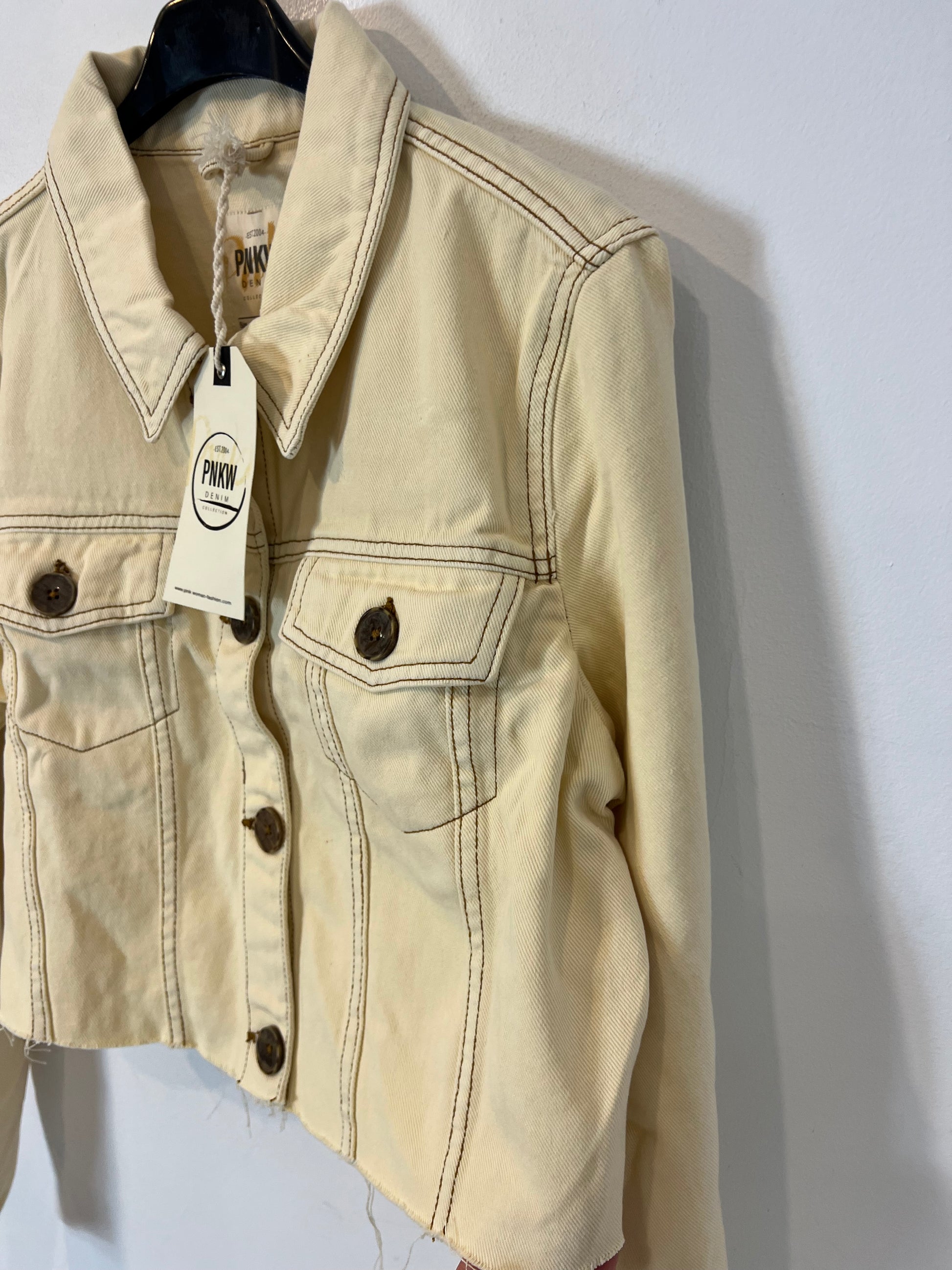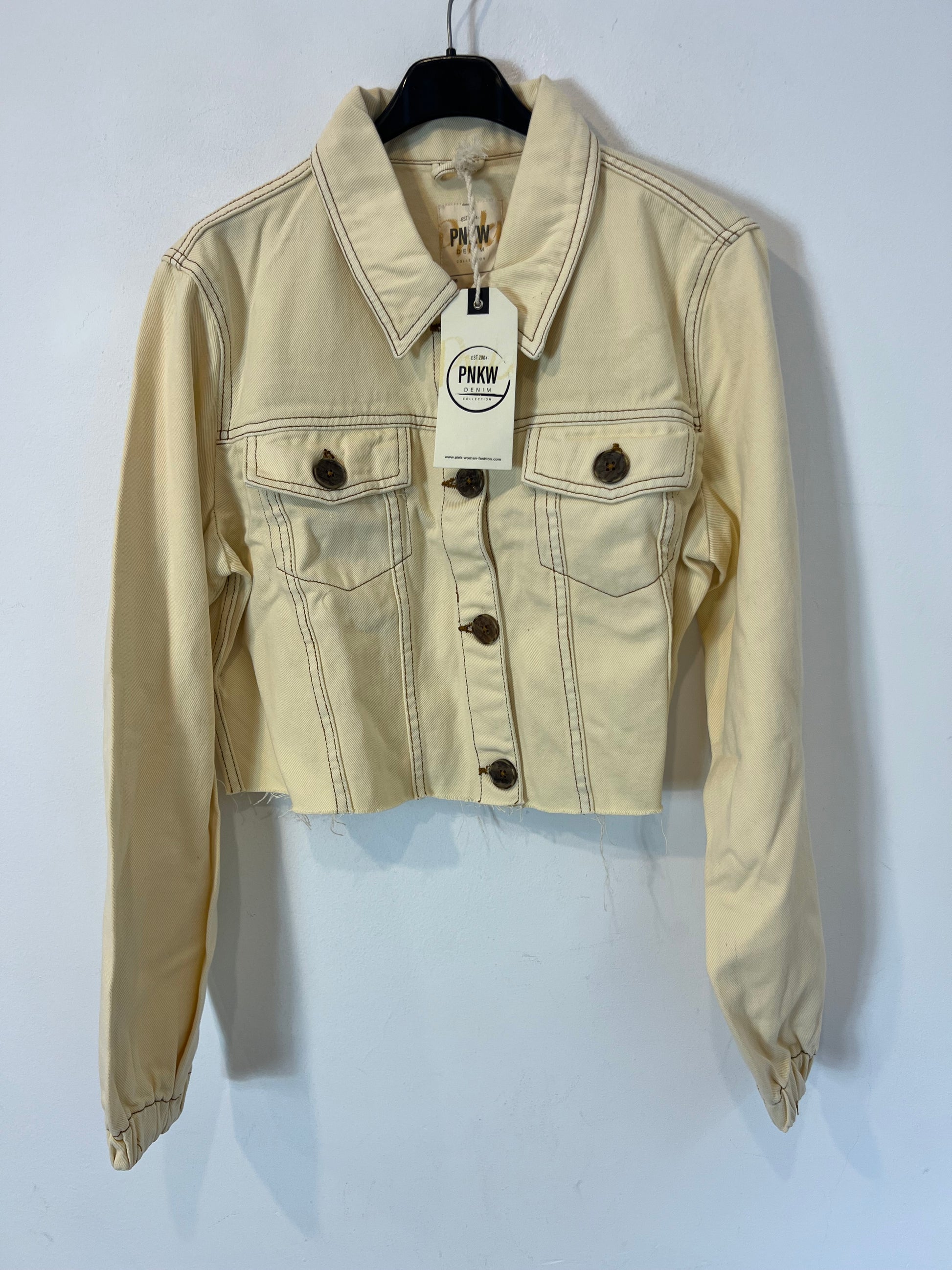 PINK WOMAN. Cazadora crop beige costuras. T L