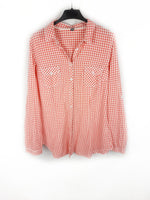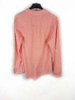 Camisa de cuadros estilo oversized en tono rosa y blanco. No es elástica. De sisa a sisa 54 cm largo 75 cm