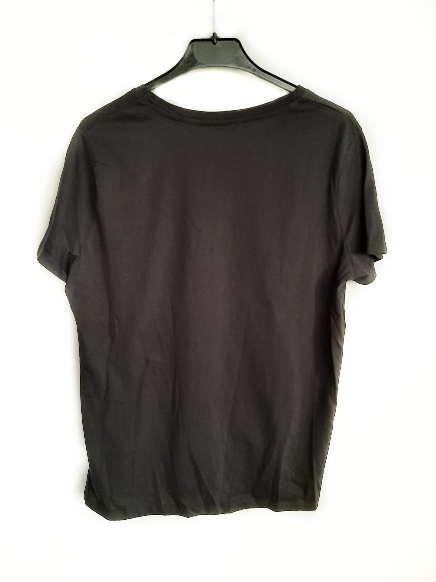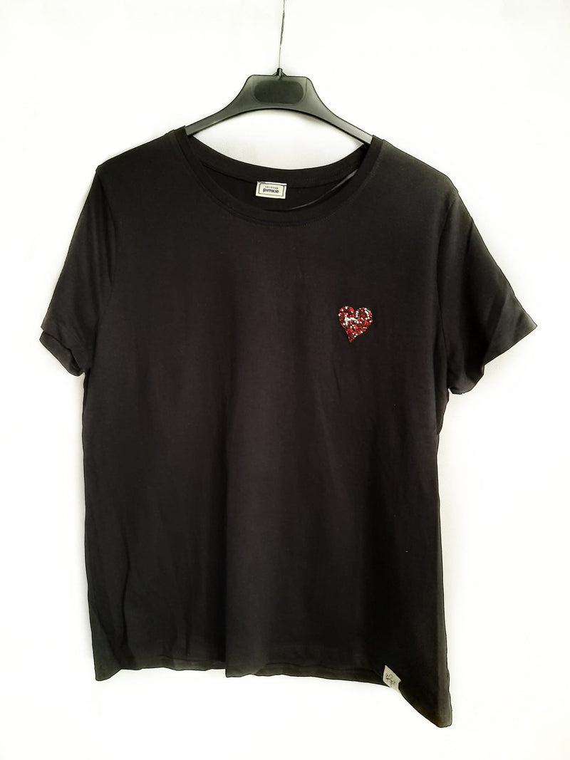 Camiseta negra básica con detalle de un corazón. Es elástica