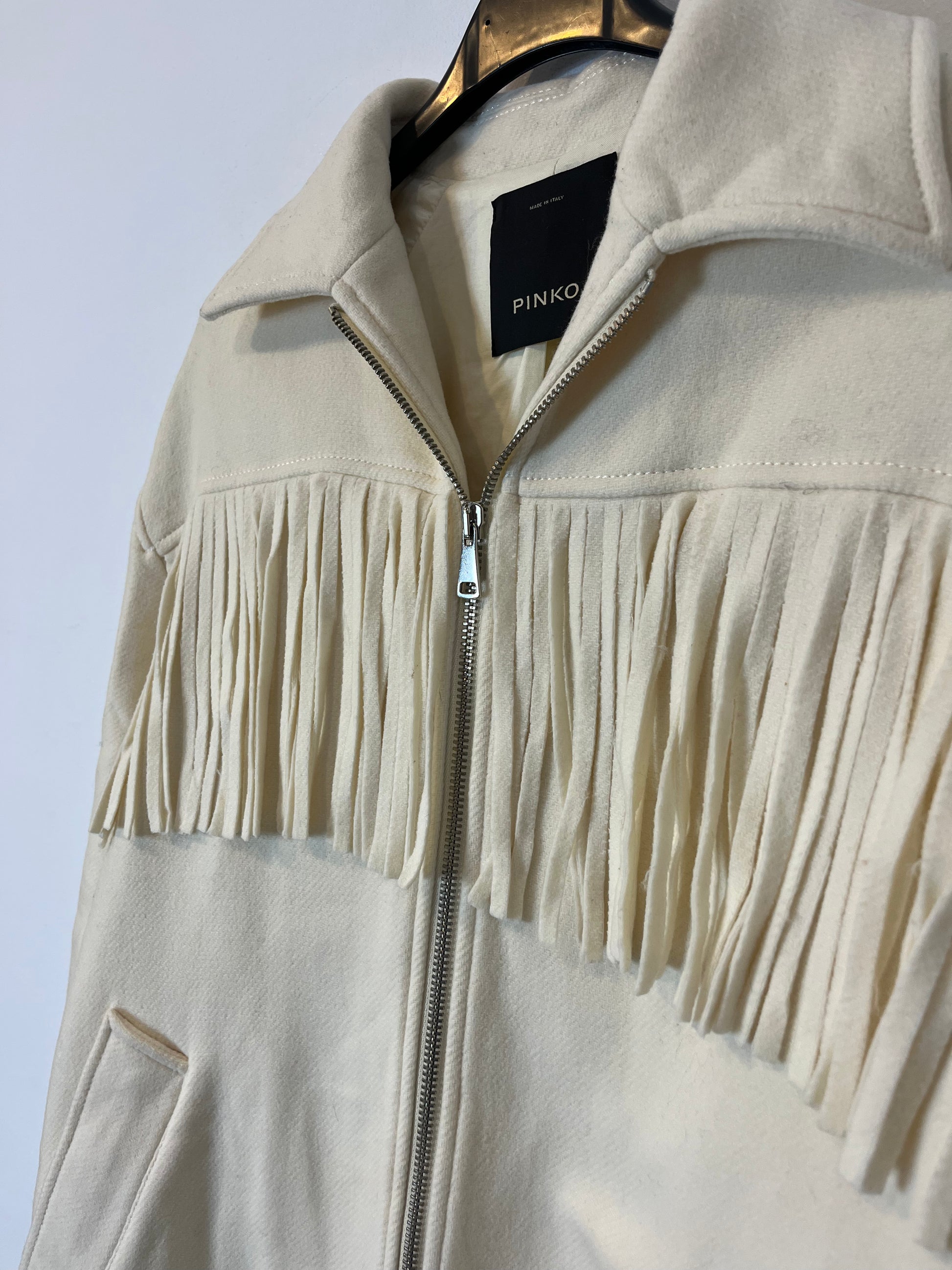PINKO. Chaqueta lana flecos. T 36 (M)
