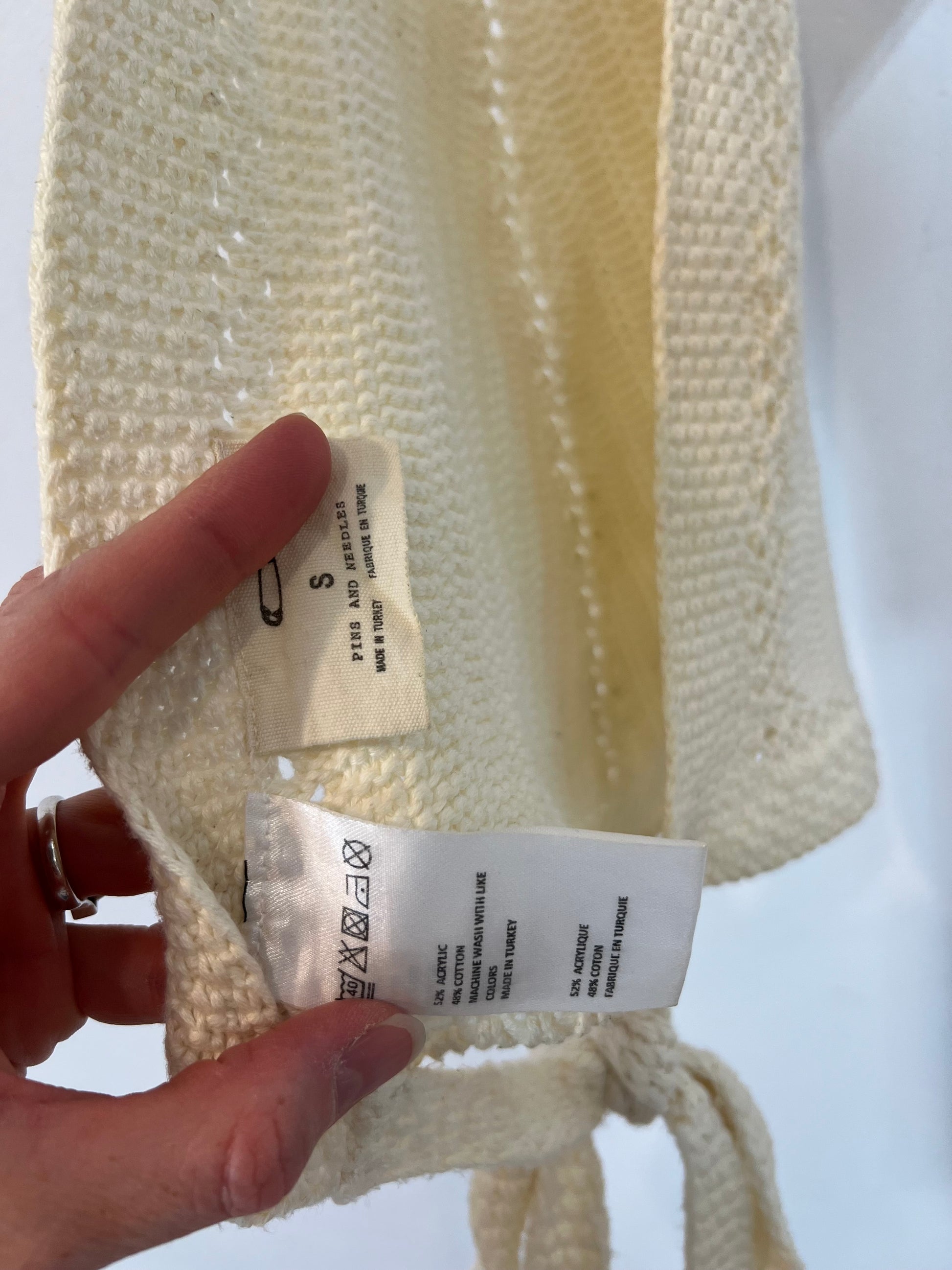 top croché ajustable en cuello y cintura. largo 34 cm.