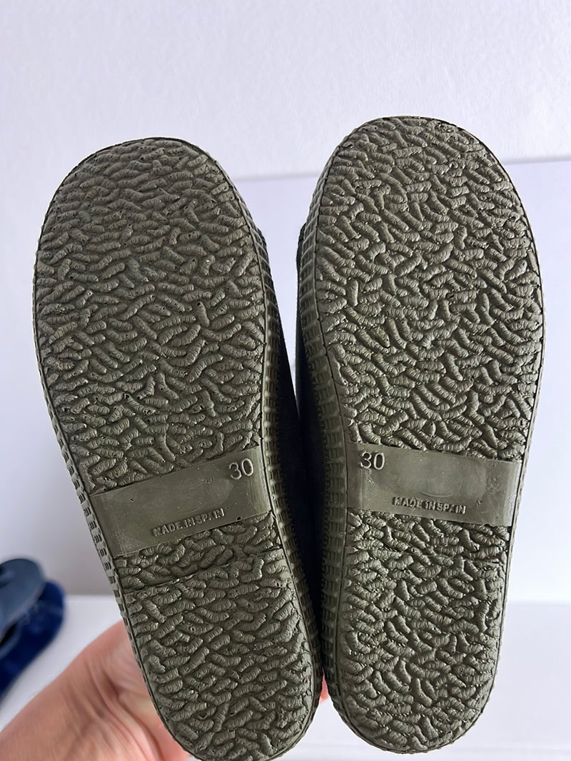 PISAMONAS. Zapatillas serraje cordones verdes. T 30