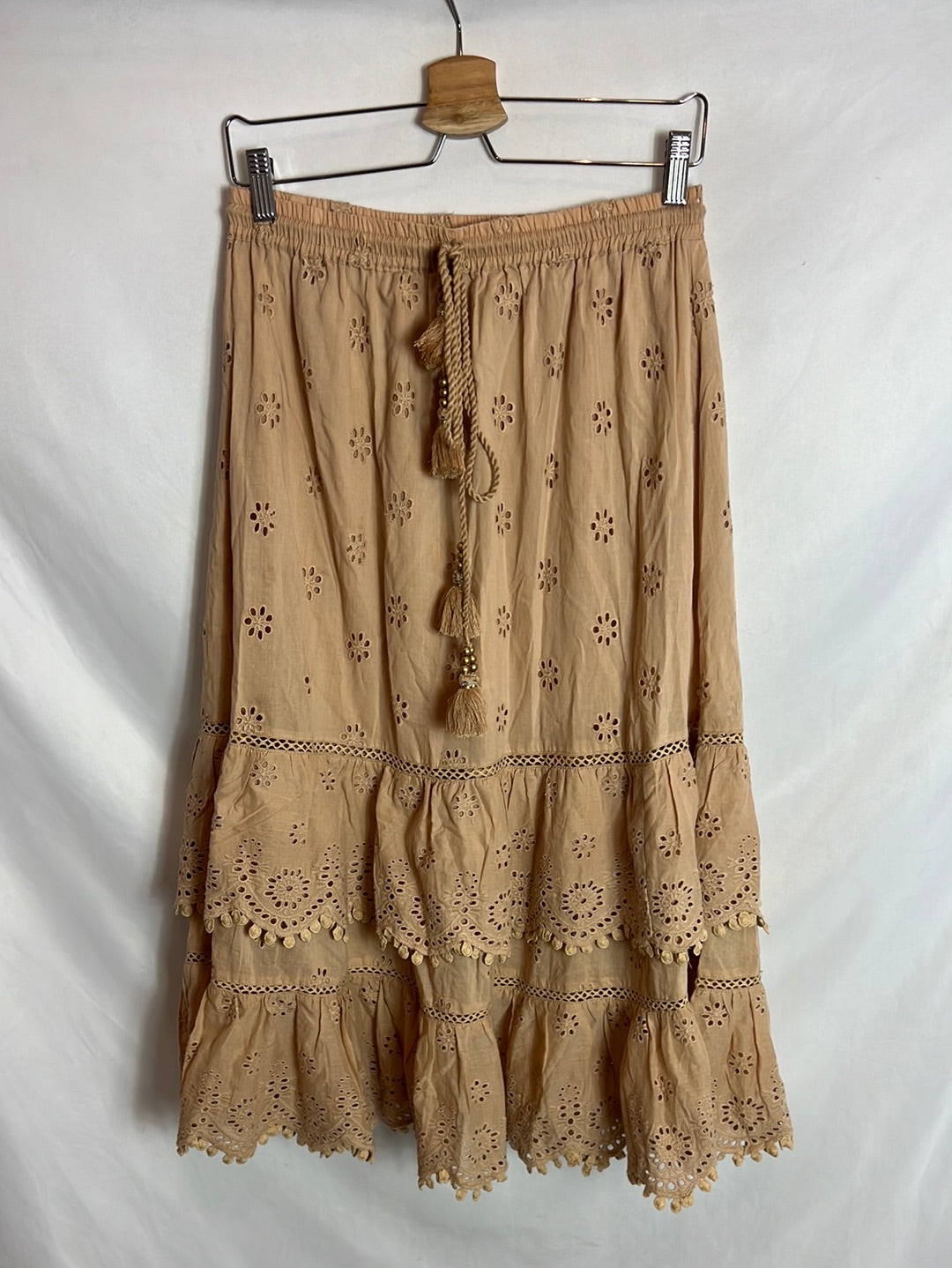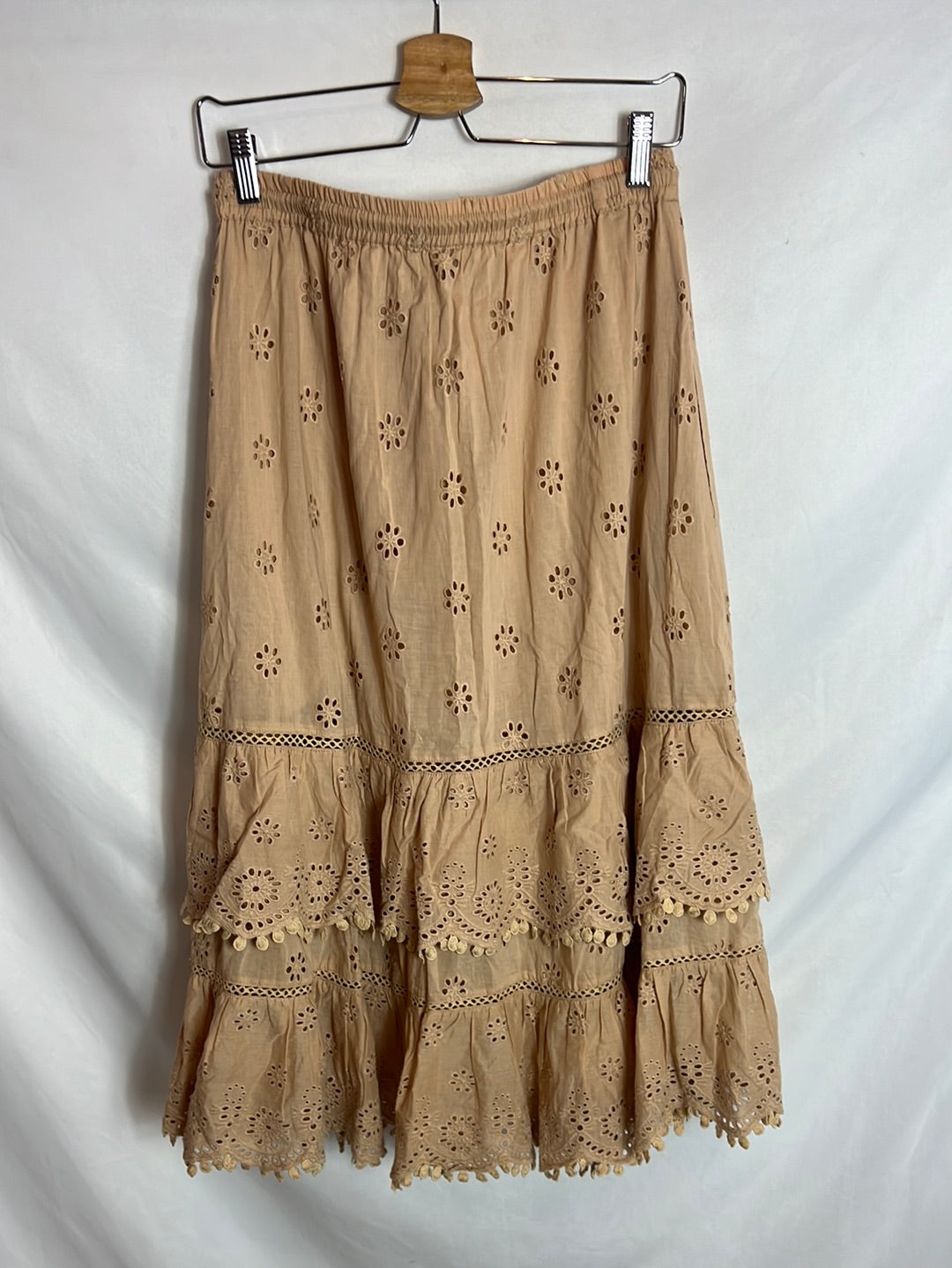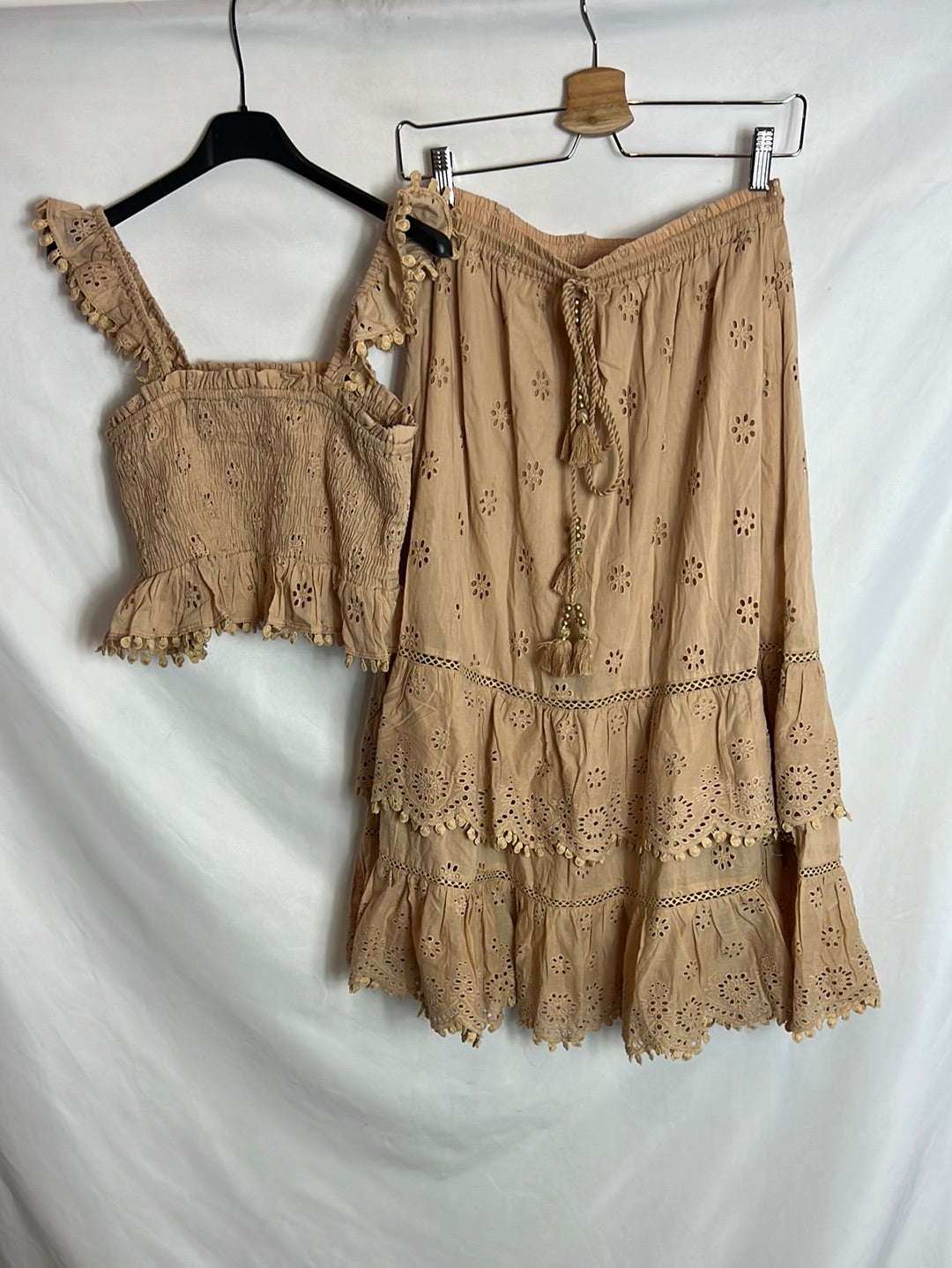 Total look rosa empolvado troquelado. Cintura 36cm, largo 79cm. Largo 42cm elastico