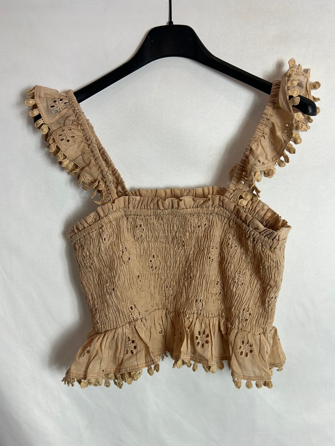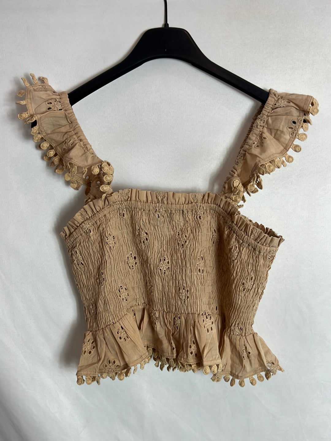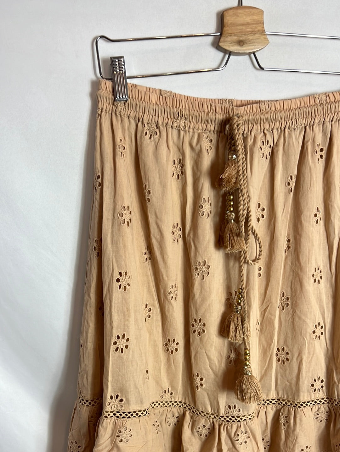 Total look rosa empolvado troquelado. Cintura 36cm, largo 79cm. Largo 42cm elastico