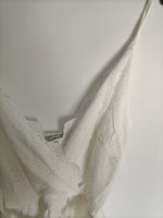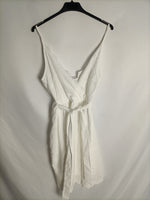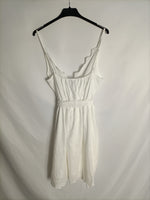 Vestido corto blanco cruzado troquelado. tirantes ajustables