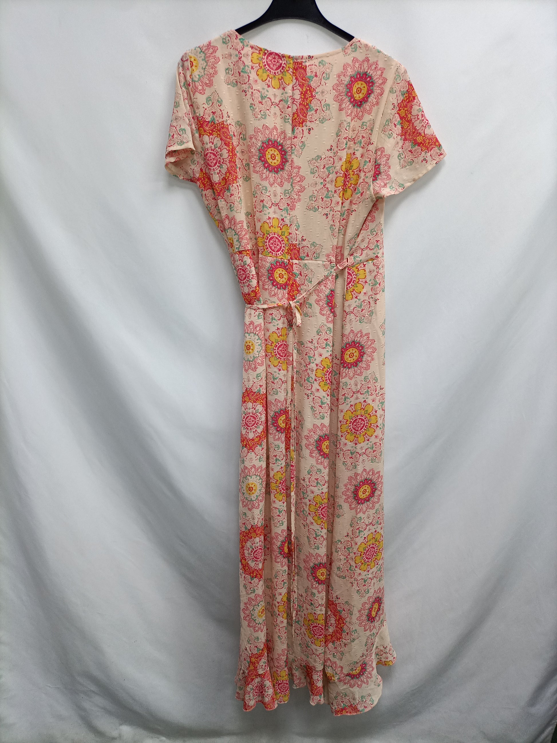 NUEVO CON ETIQUETA.Vestido largo asimétrico cruzado multiestampado. De sisa a sisa 47 cm largo 142 cm