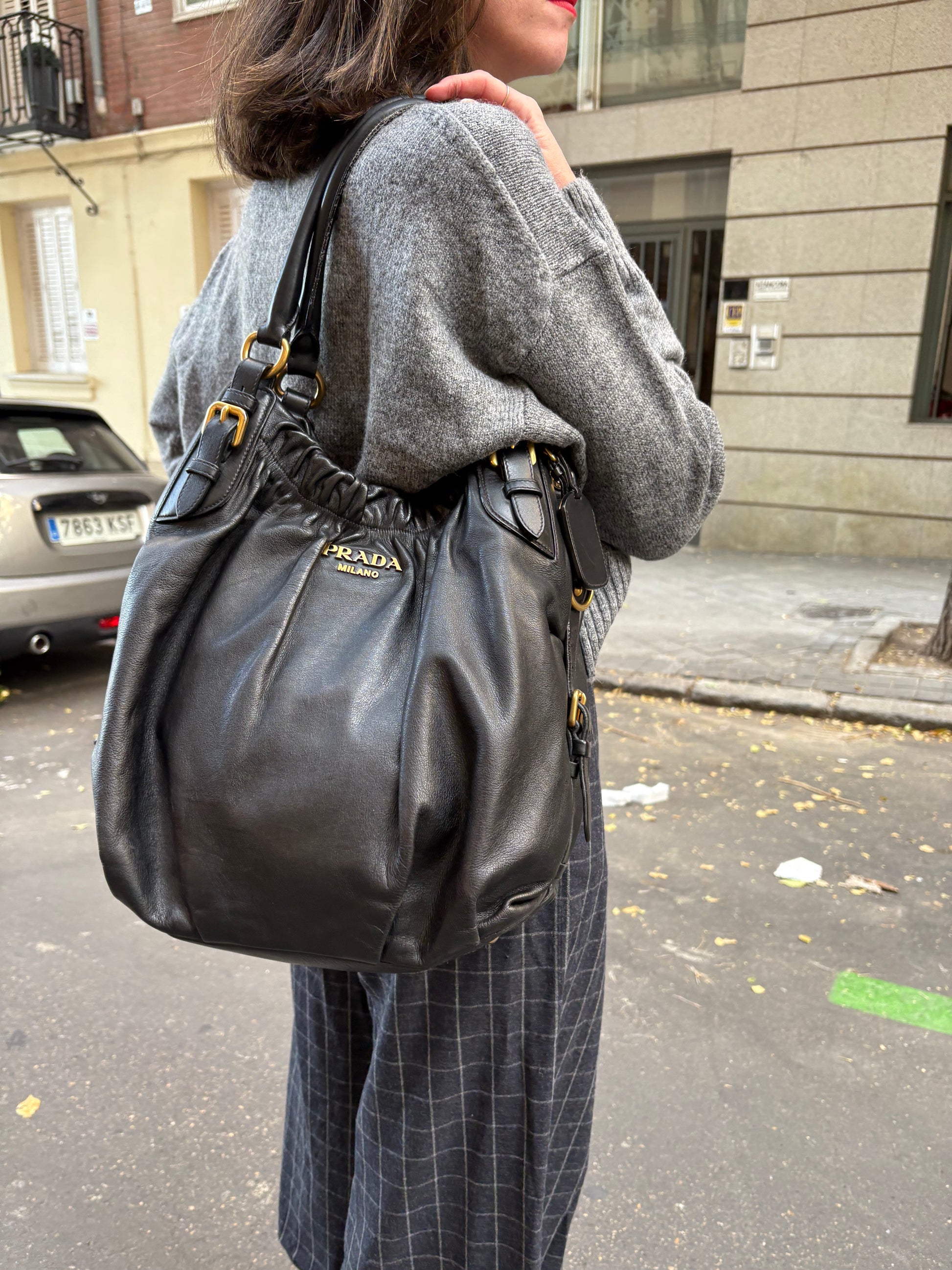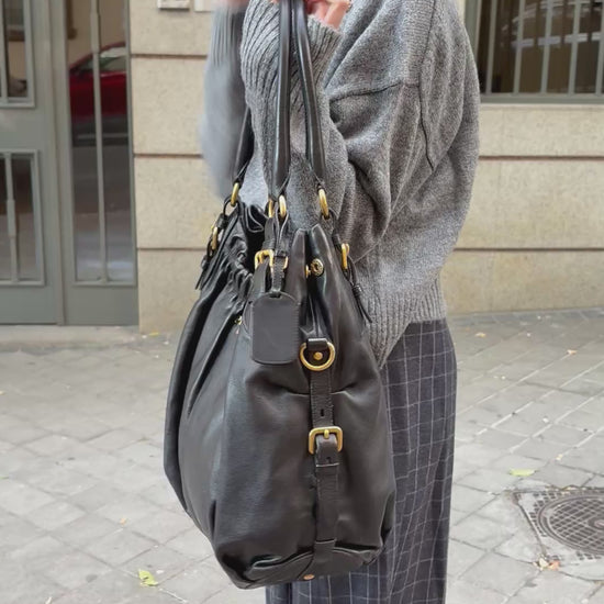 En buen estado. Marcas de uso en el asa pero poco evidentes (foto) Bolso tote piel negro Ancho 40 cm, alto 35 cm