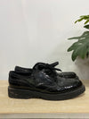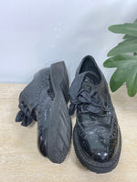 Zapatos tipo oxford negros de charol con, se abrochan con lazada de piel
