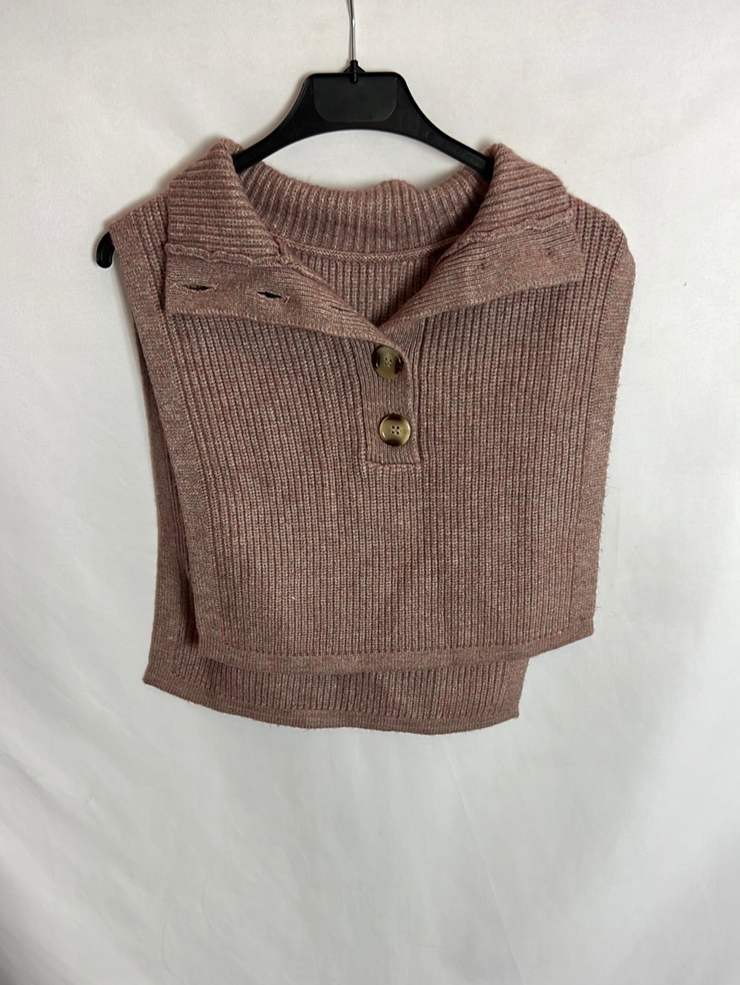 Chaleco abierto a los laterales jaspeado rosa y gris. T.u