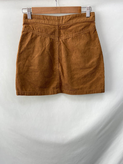Falda camel de pana con botón delante. No es elástica. Cintura 34 cm, largo 36 cm. NUEVA CON ETIQUETA