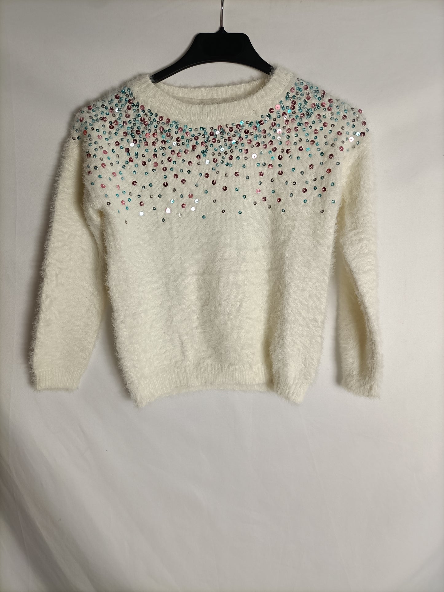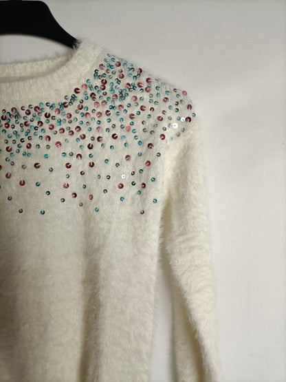 Jersey blanco de pelito con lentejuelas