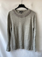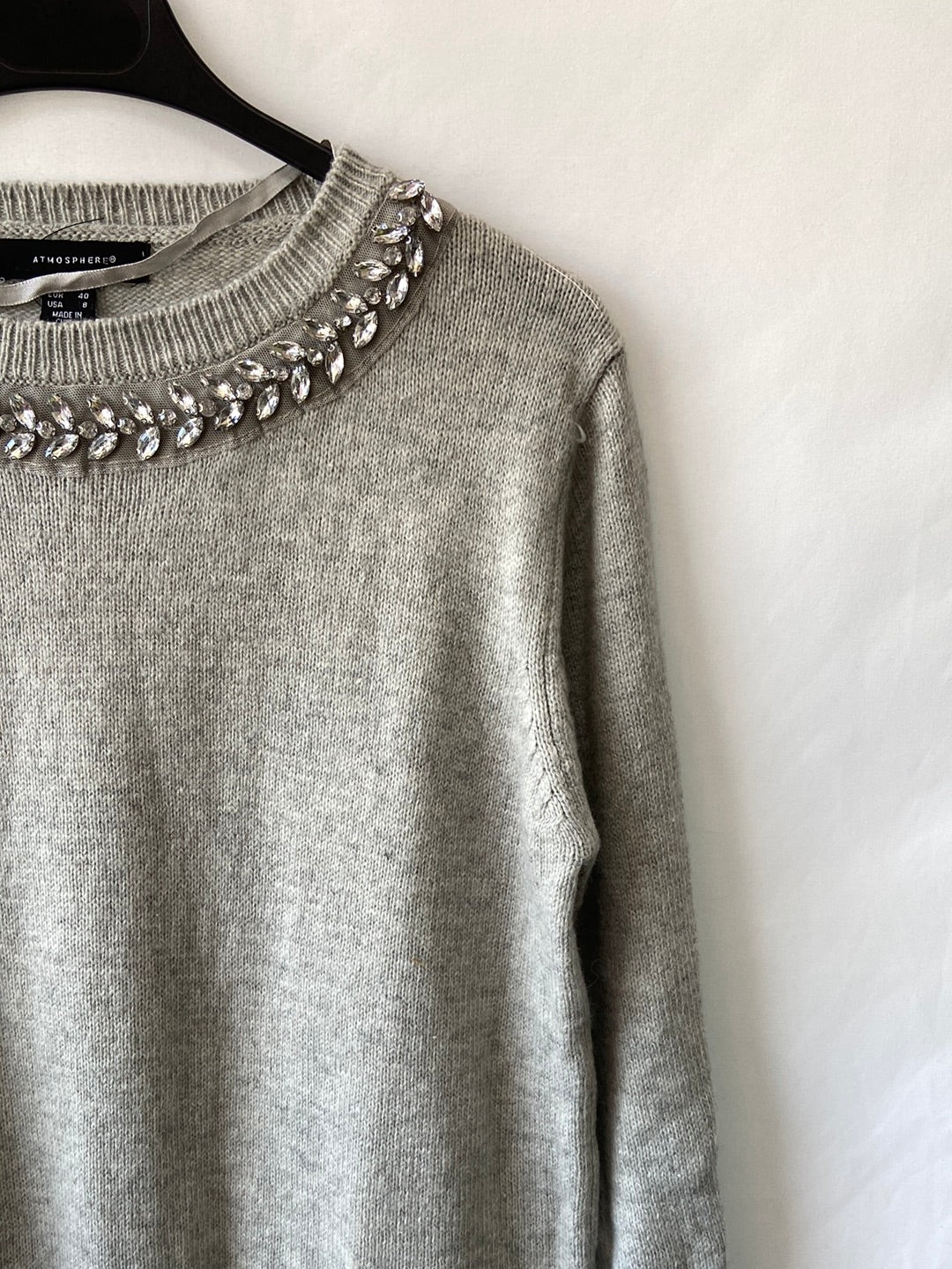 Jersey gris azulado detalle cuello pedrería. Elástico. De sisa a sisa 47 cm largo 63 cm