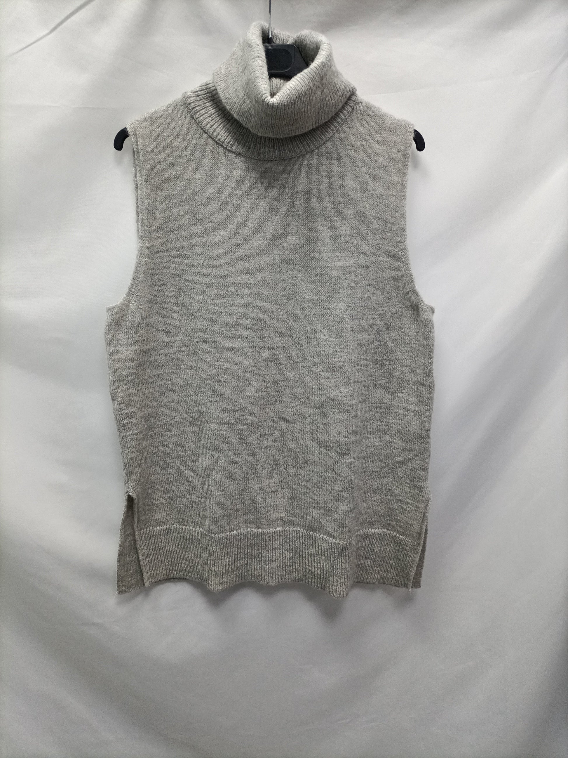 Jersey sin mangas gris de cuello alto. Fluido y con mini aperturas laterales. largo 72 cm