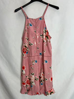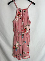 Mono corto rosa con flores. Escote halter. cintura elástica.