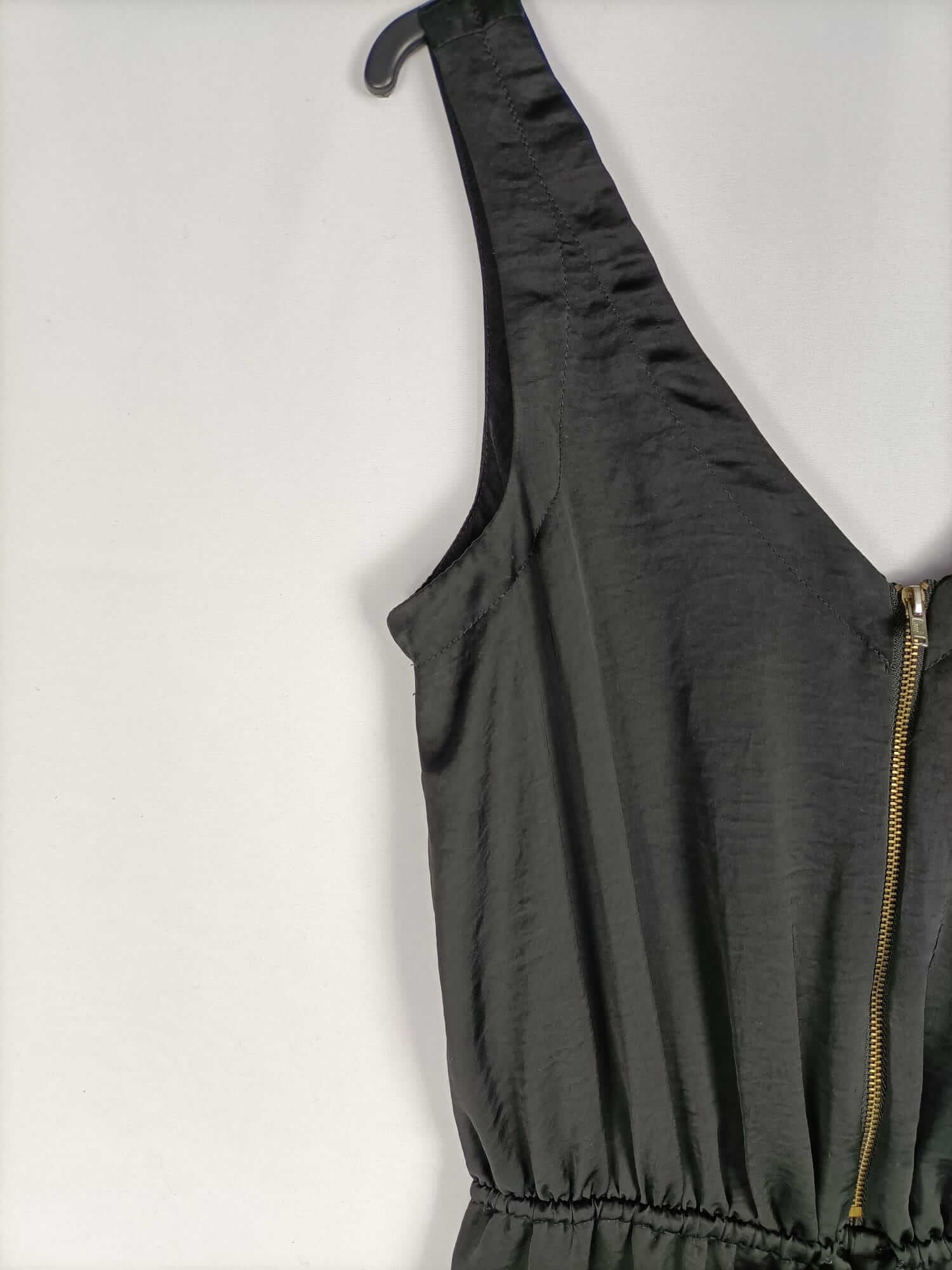 Primark. Mono negro fluido con cremallera delantera. Elástico en la cintura ajustable y en los tobillos. De sisa a sisa 46 cm largo 146 cm