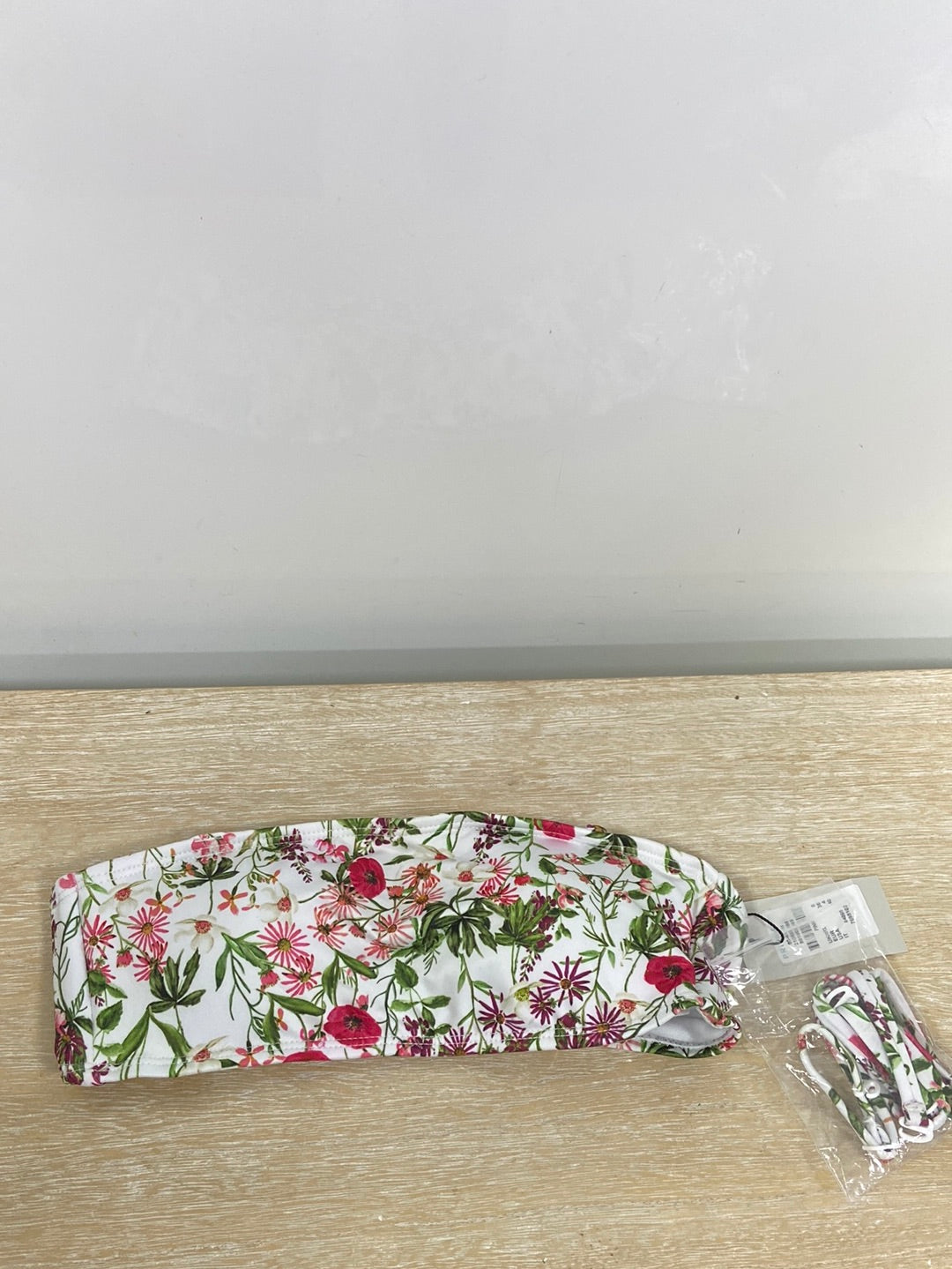 NUEVO CON ETIQUETA. Parte de arriba de bikini blanco con flores.