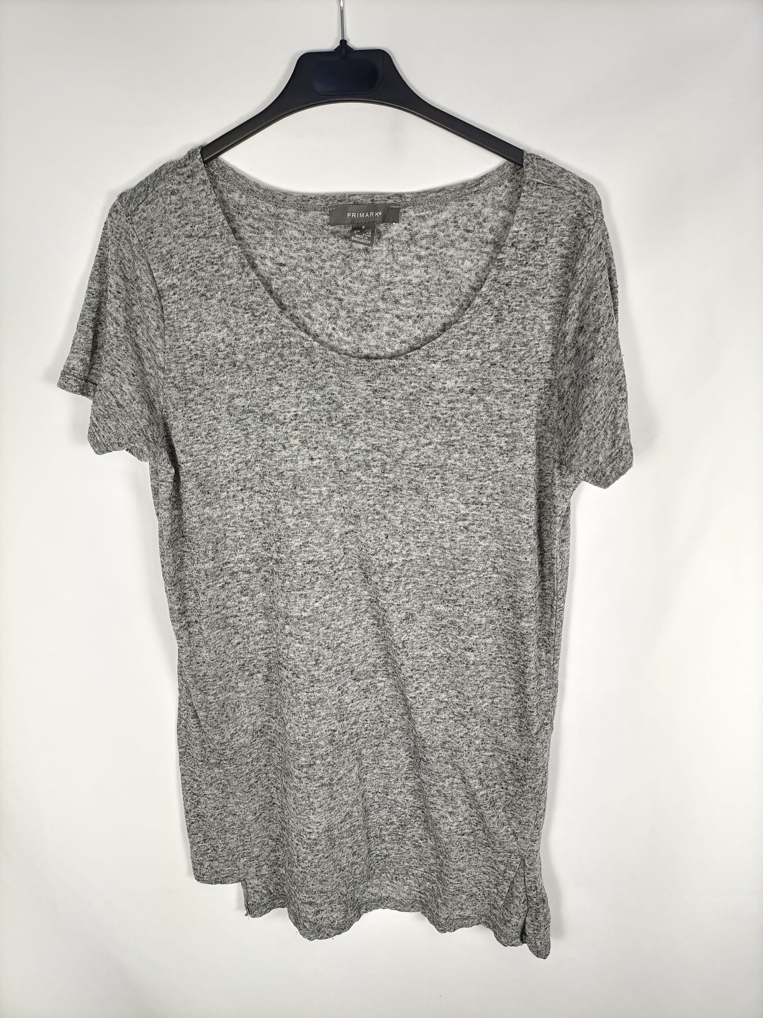 Primark. S. Camiseta larga gris claro jaspeada. Elastico. Largo 74 cm