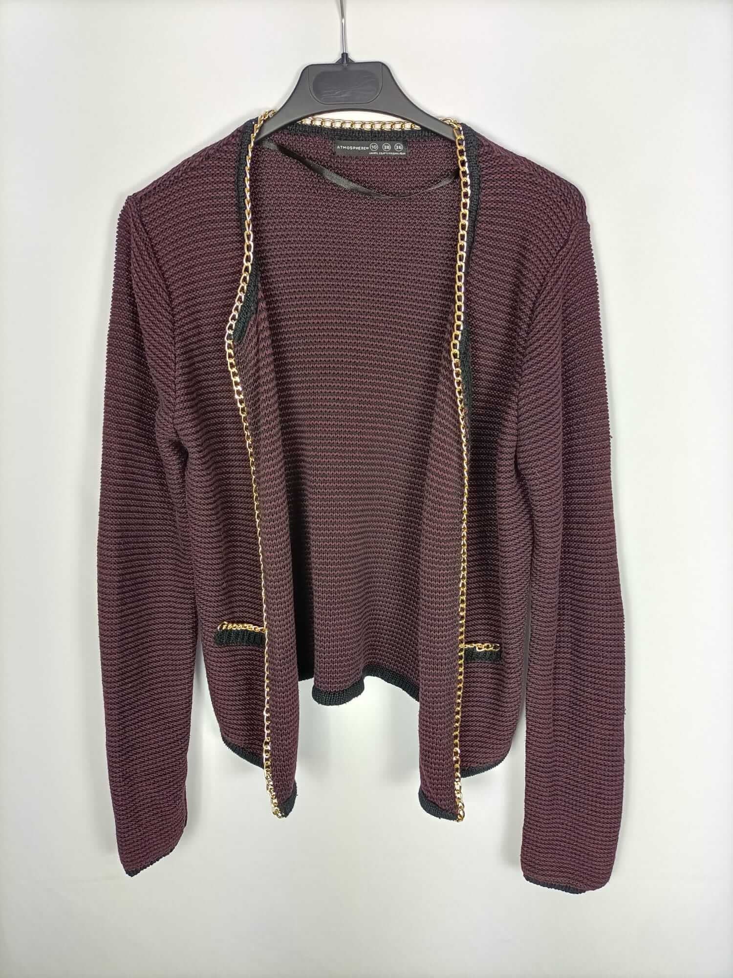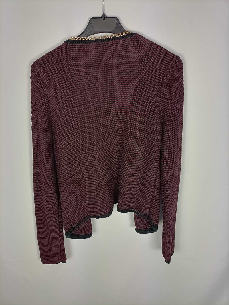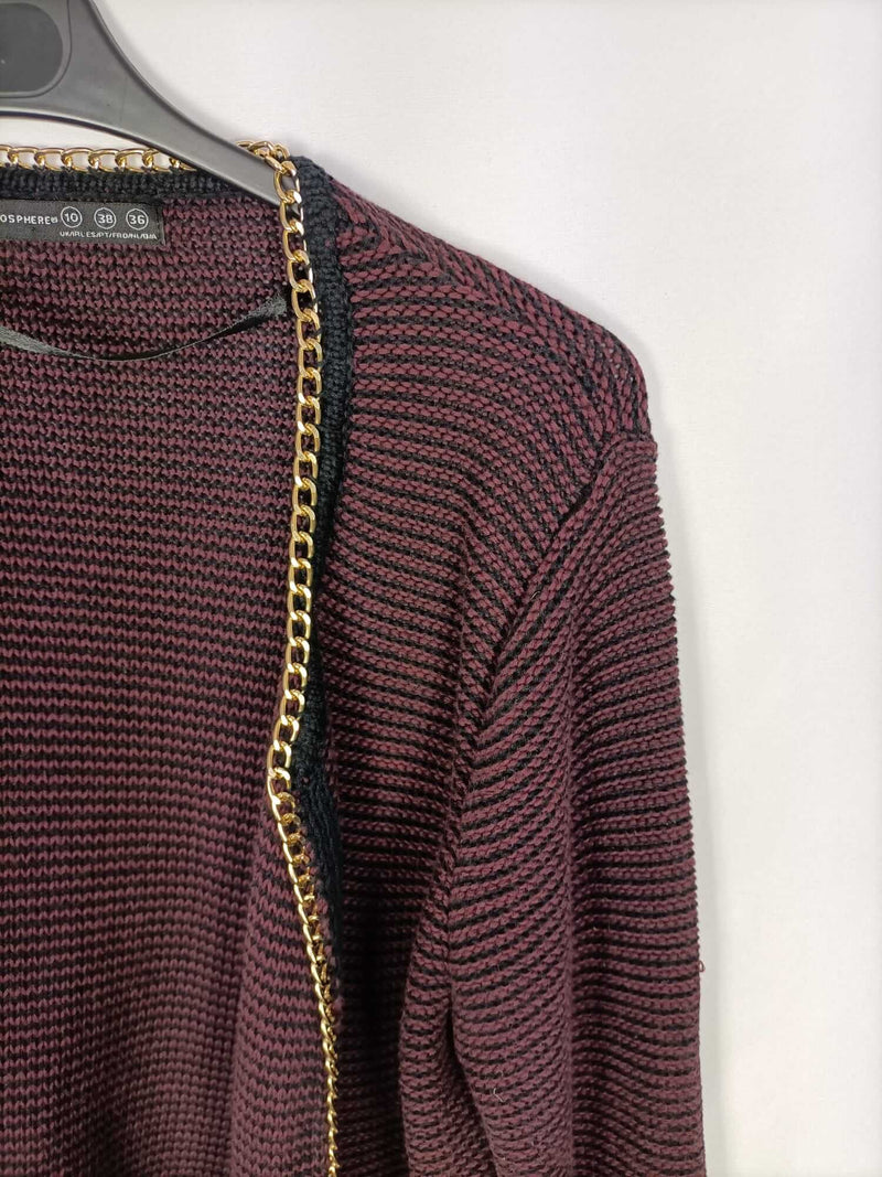 Primark. 38. Rebeca de punto burdeos y negro con detalle de cadena dorada. No se abrocha. Elastica. Largo 52 cm