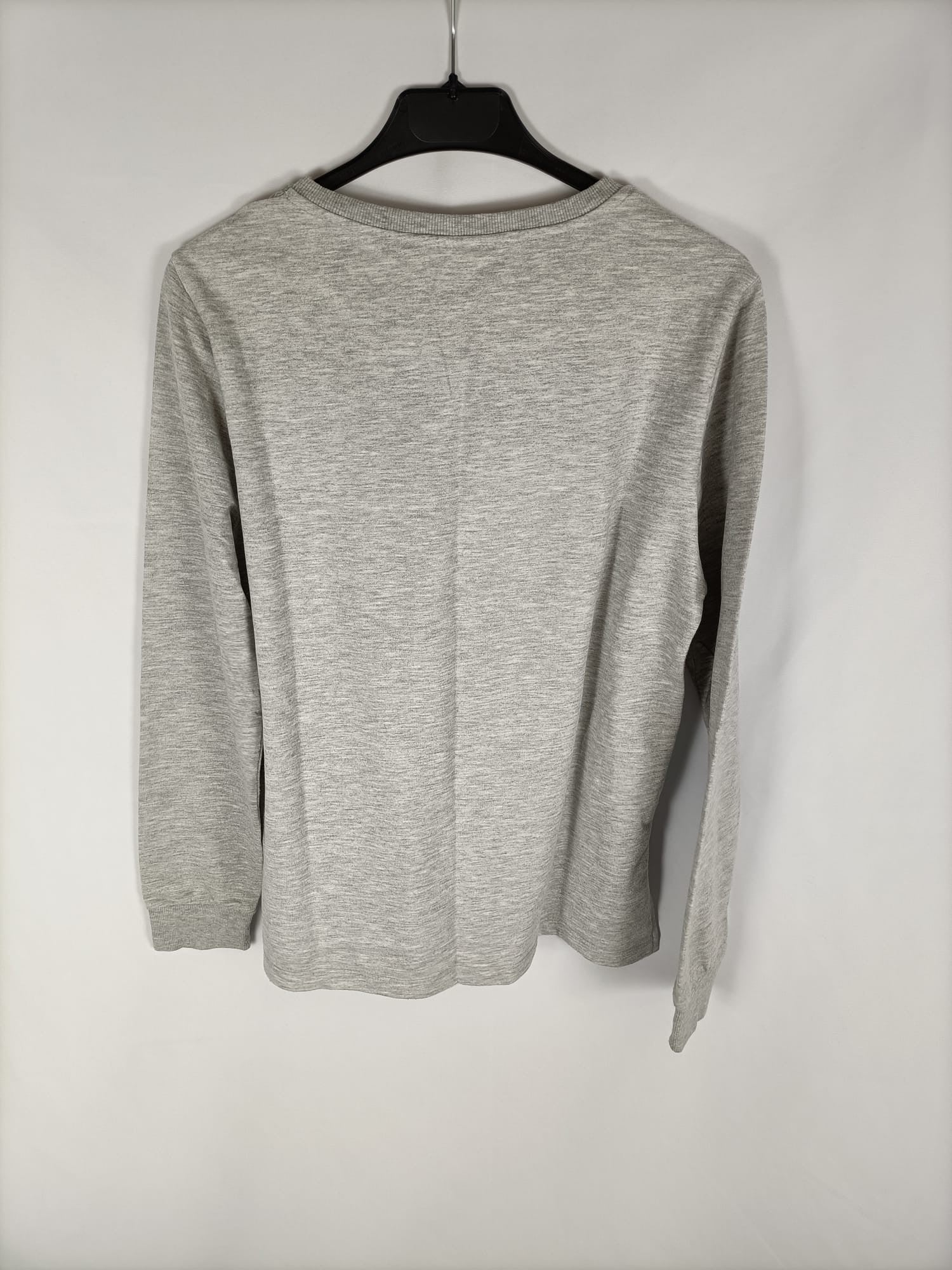 Primark. 36. Sudadera gris con flores en tono rosa. Elástica. Larga 57 cm