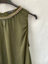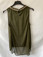 Camiseta verde de tejido transparente tipo tull. Muy elástico y largo asimétrico.