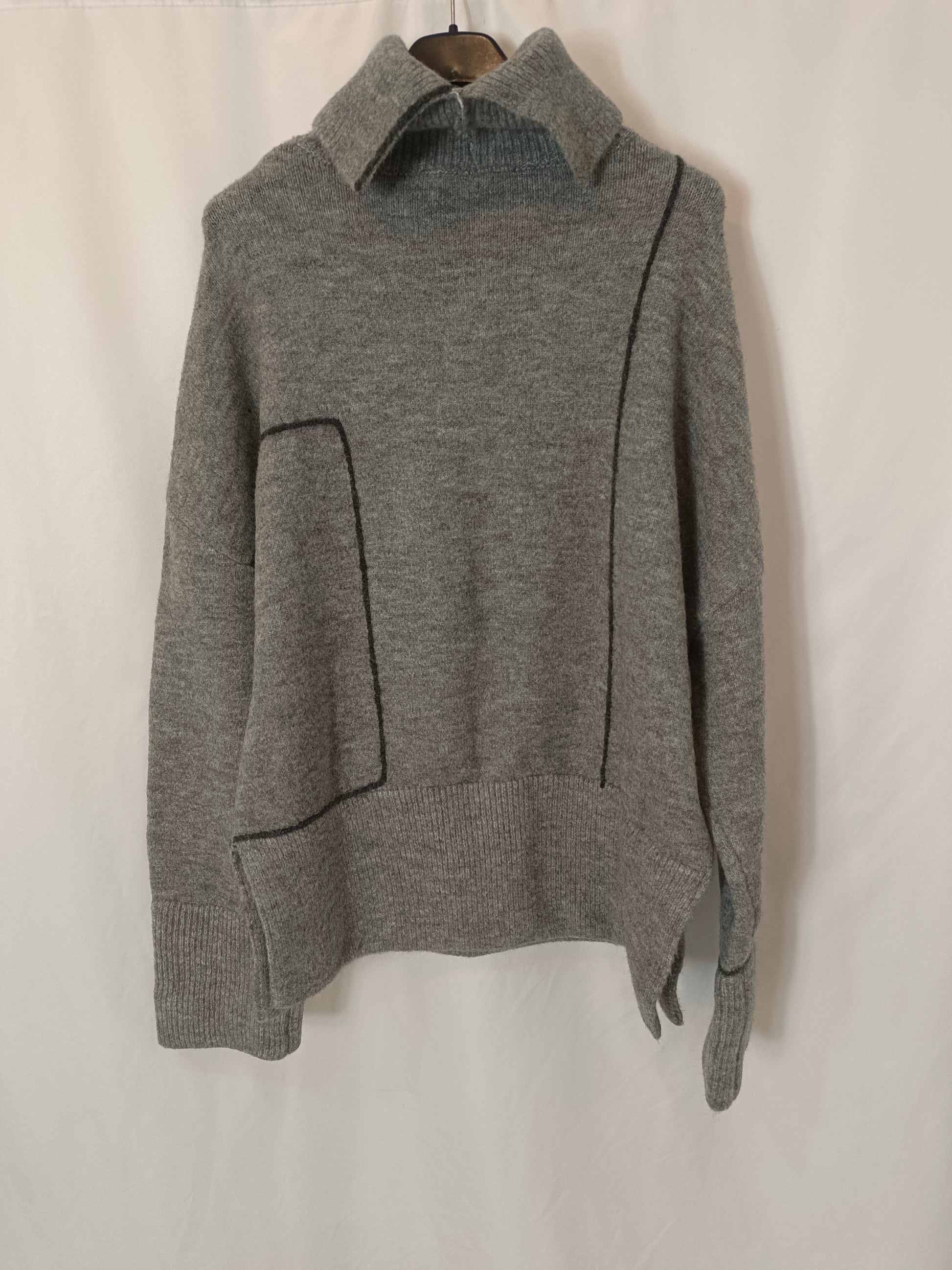 NUEVO CON ETIQUETA. Jersey gris detalles en negro con el cuello alto. Largo 69 cm