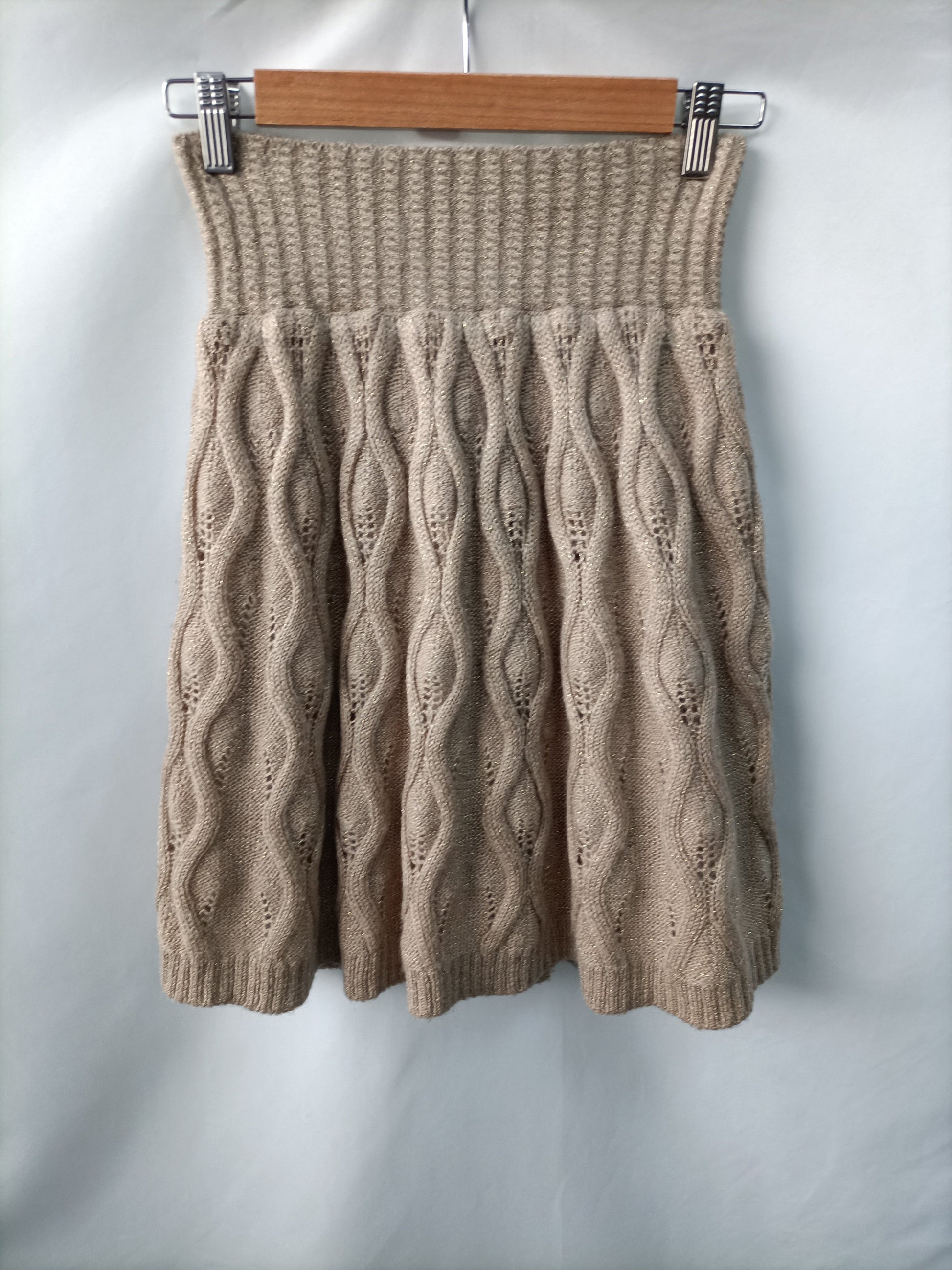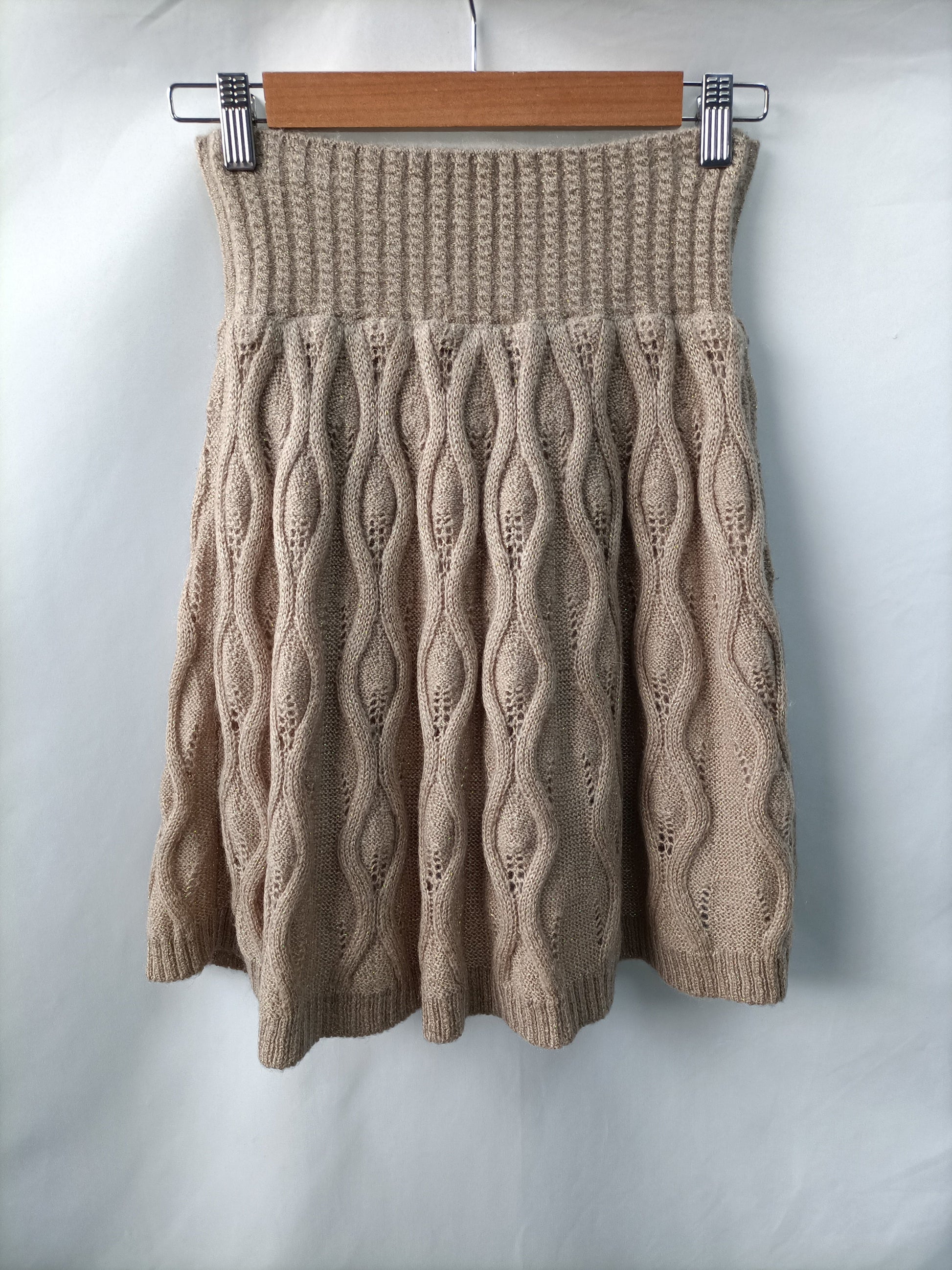 Falda de punto Camel con detalle de hilos dorados. El elástica. Largo 53 cm