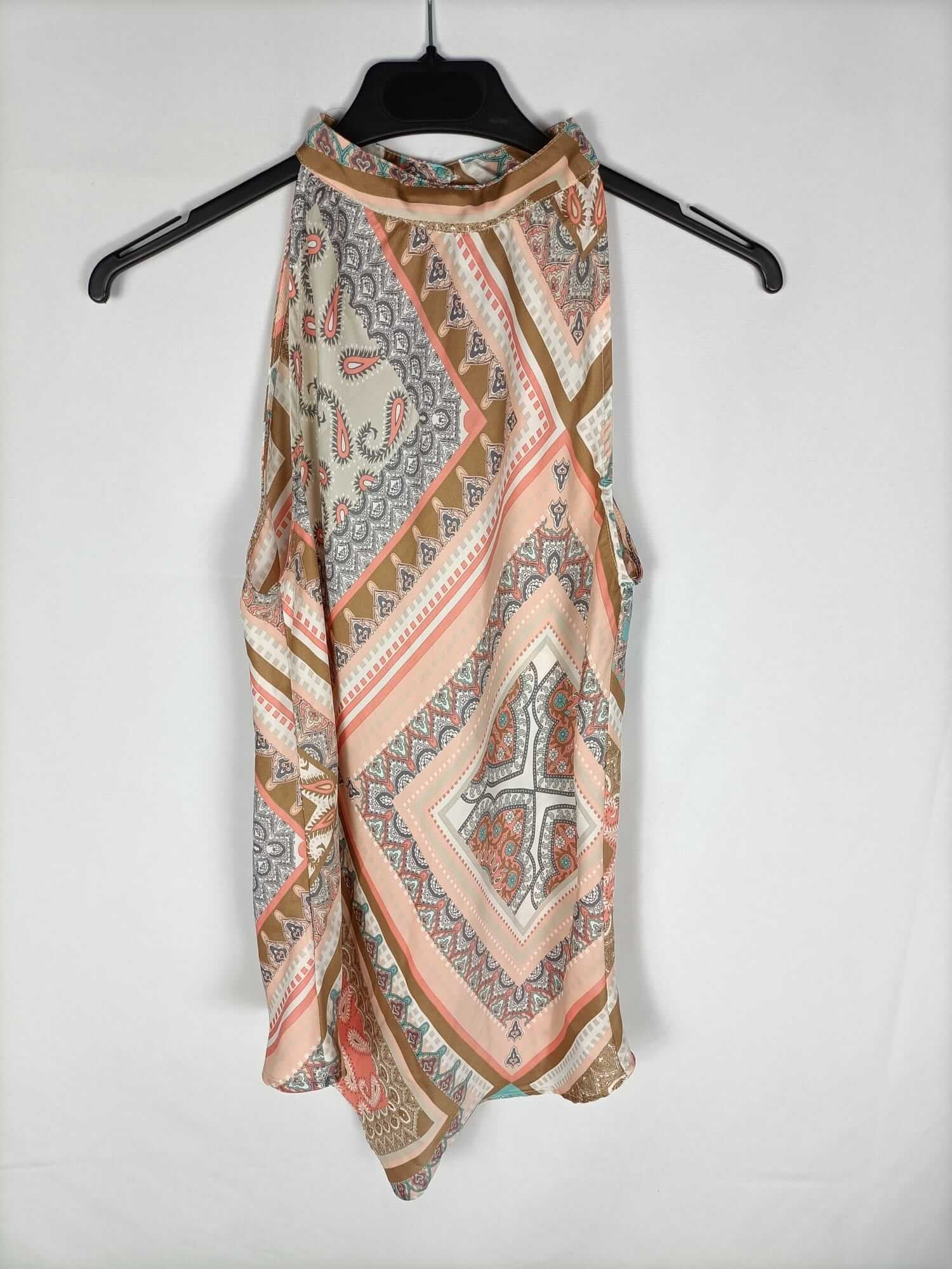 Fluida fluida con estampado de amebas y escote halter. De sisa a sisa 52 cm largo 62 cm
