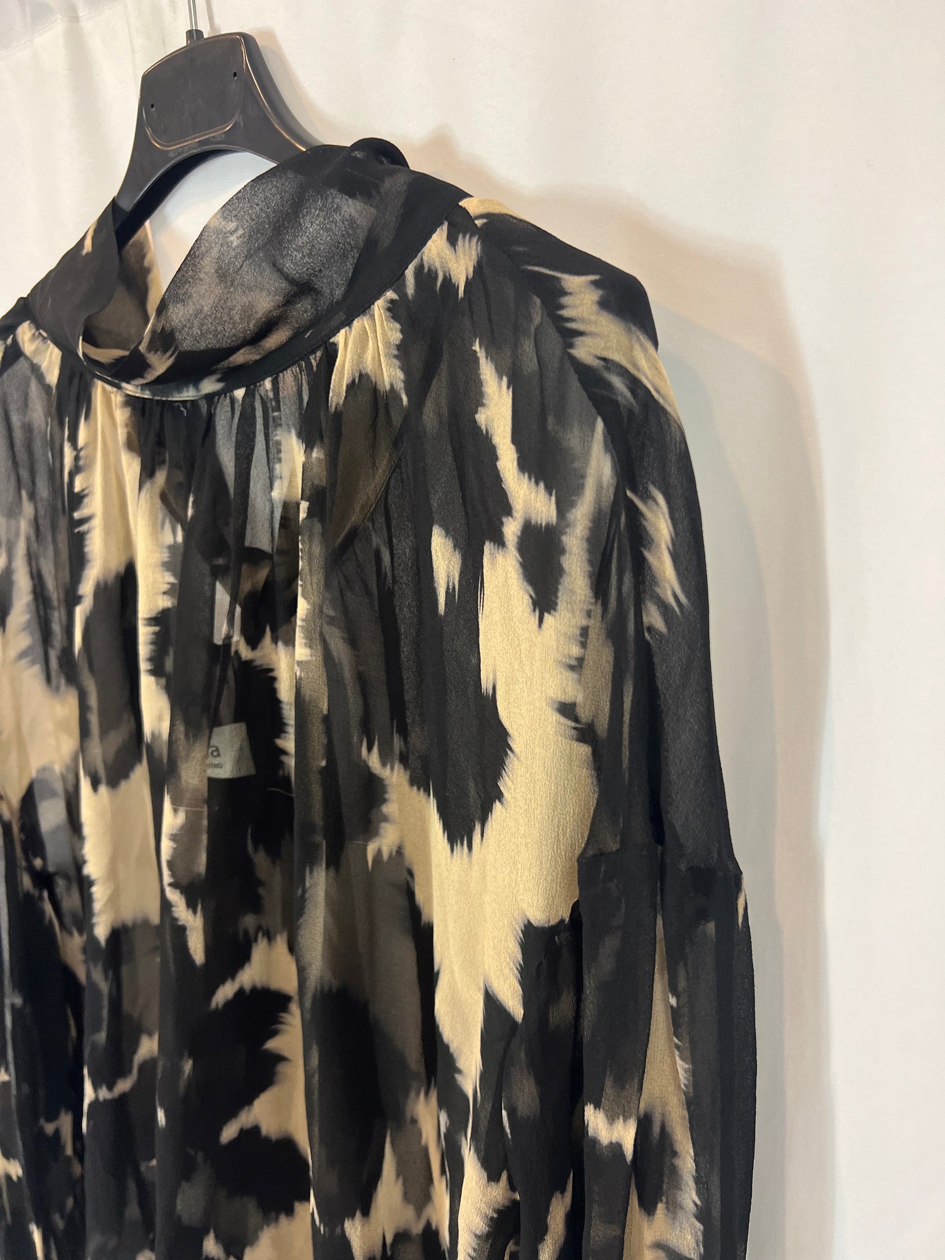 Blusa seda bicolor detalle espalda. de sisa a sisa 62cm, largo 61cm