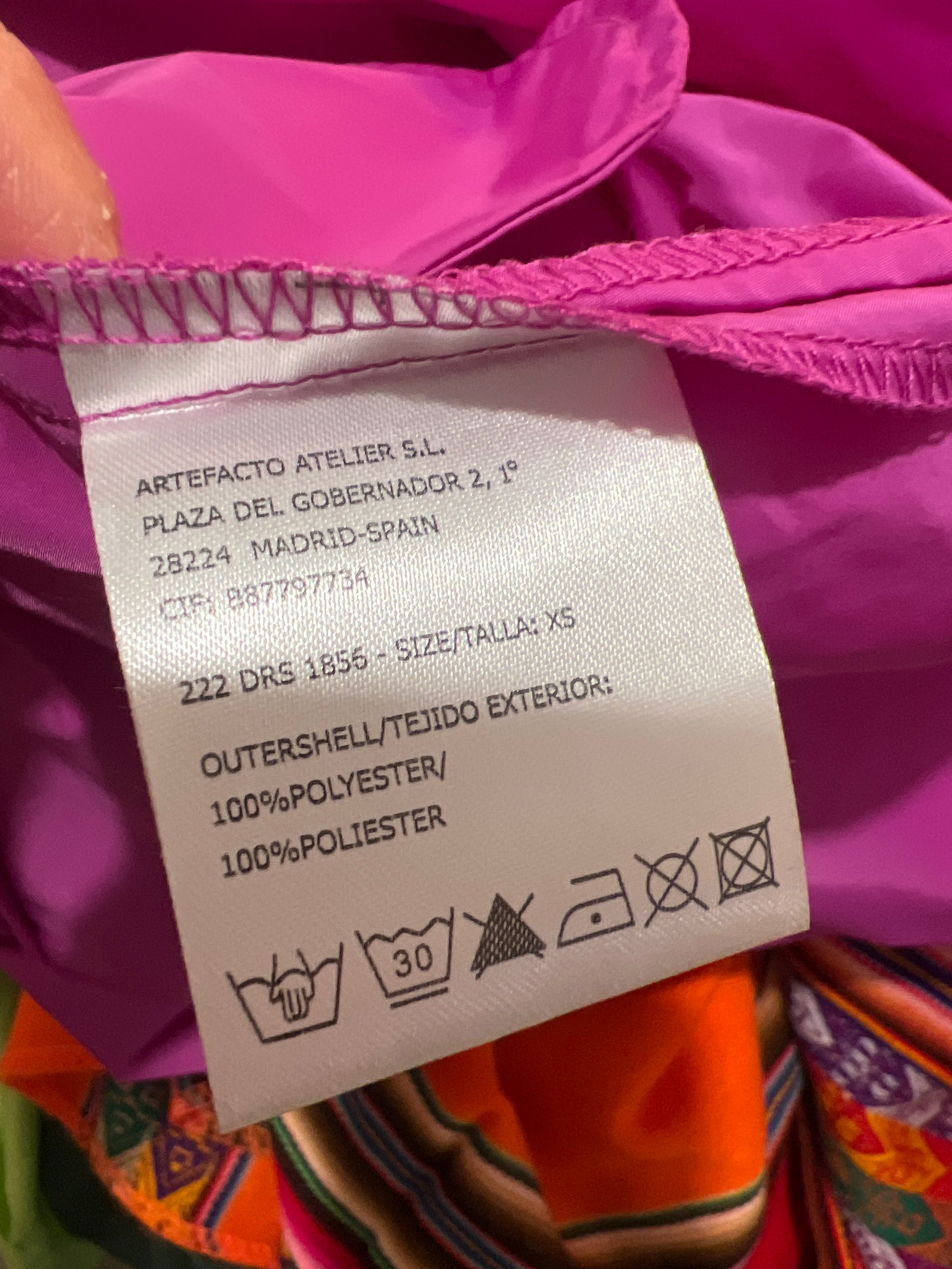 NUEVO CON ETIQUETA. Vestido largo rosa buganvilla abotonado con volante. tejido efecto impermeable. de sisa a sisa 53 cm largo 125 cm