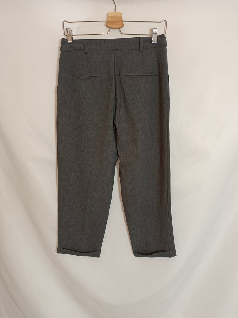 Pantalón fluido gris de pinzas. cintura 38 cm