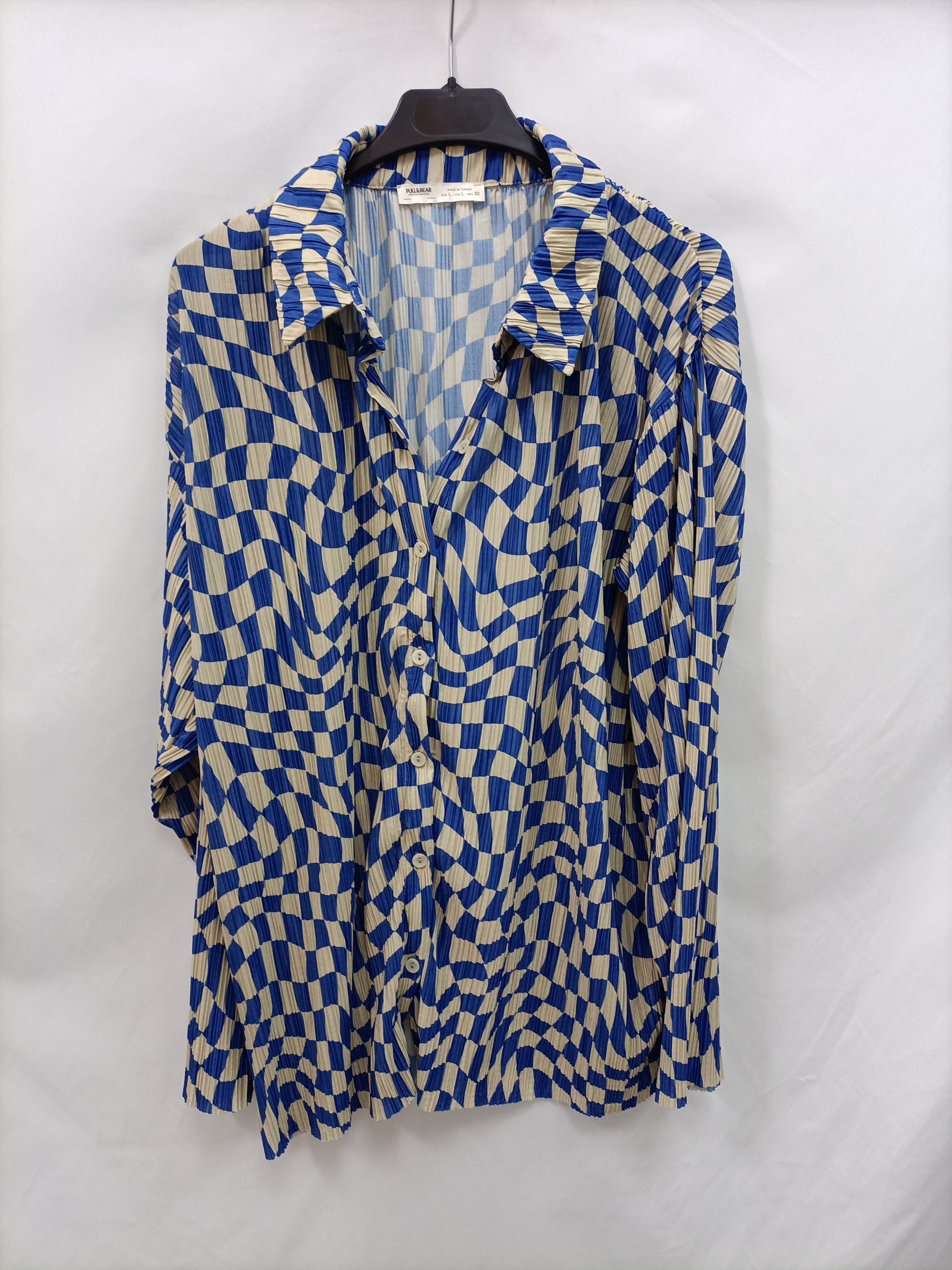 PULL&BEAR.Blusa plisado estampado geométrico T.L