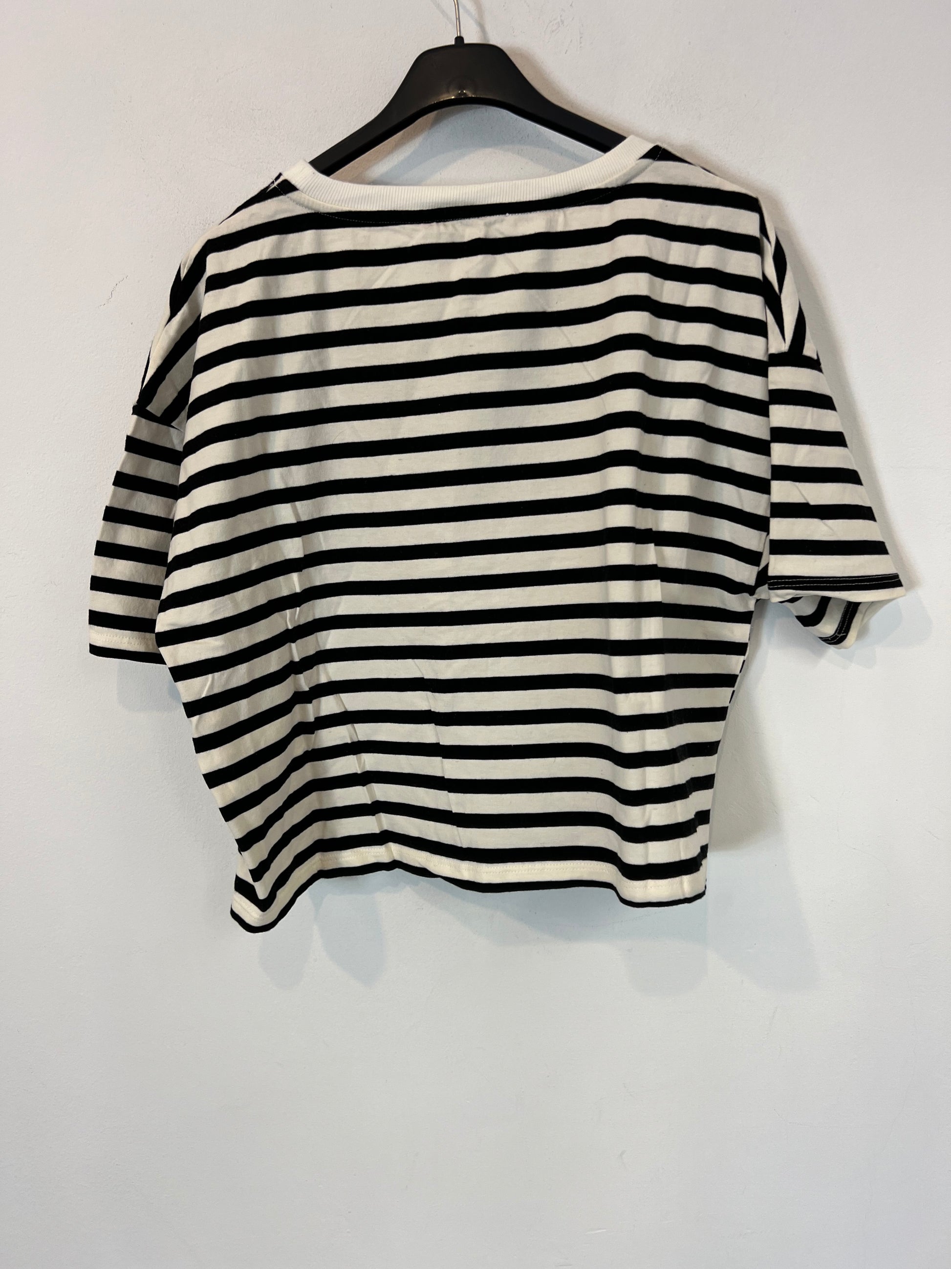 Camiseta rayas letras verdes. Espalda 53 cm ,largo 49 cm