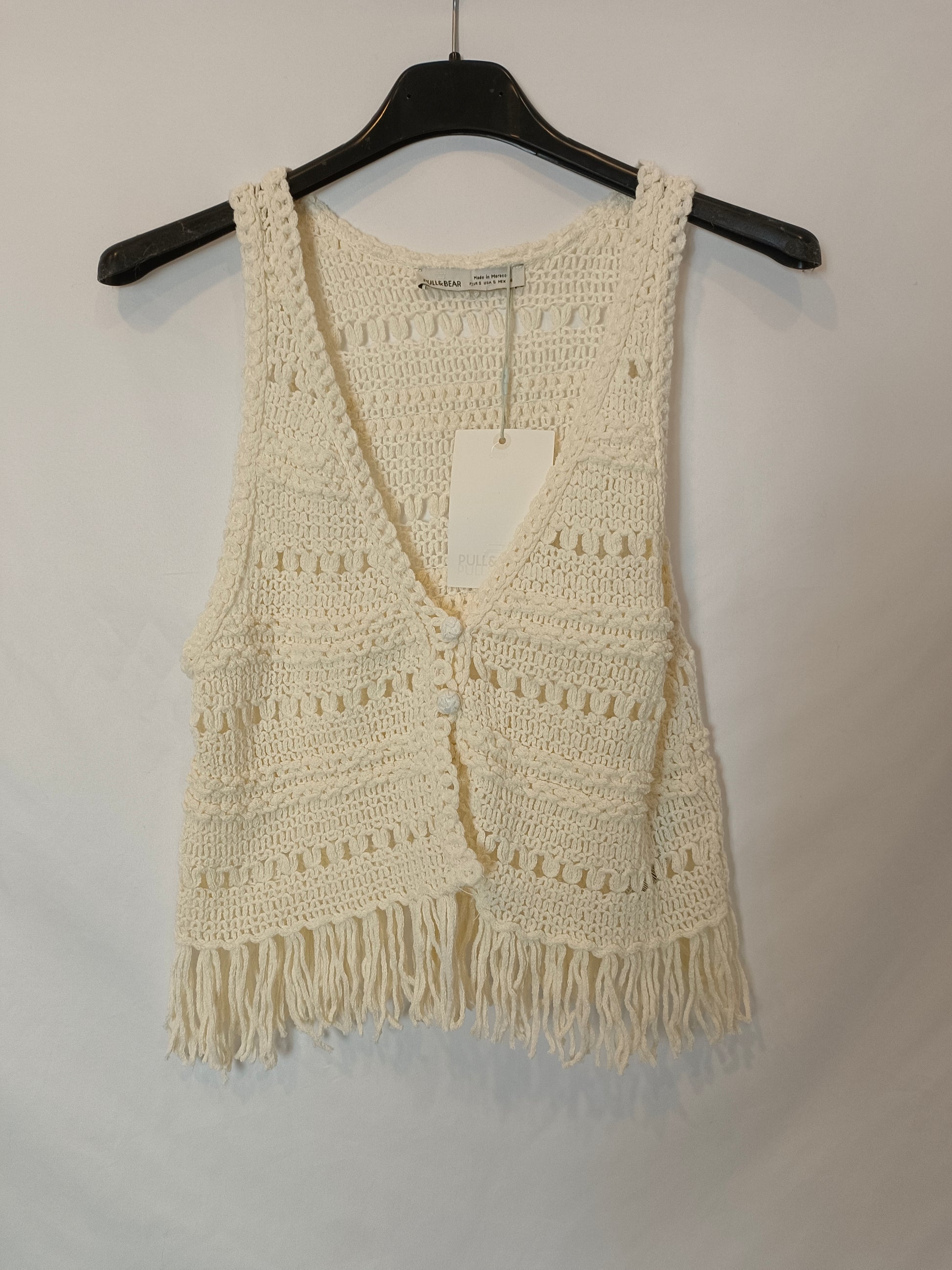 PULL&BEAR. Chaleco croché beige T.s