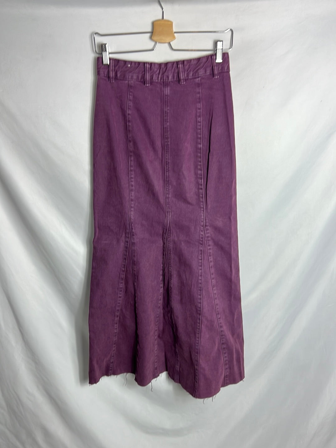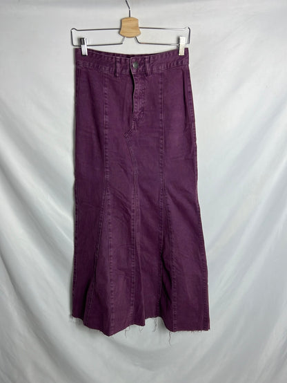 falda larga bordeo denim. Entallada en la cintura. No elástica. efecto lavado. Largo 97cm, cintura 35cm