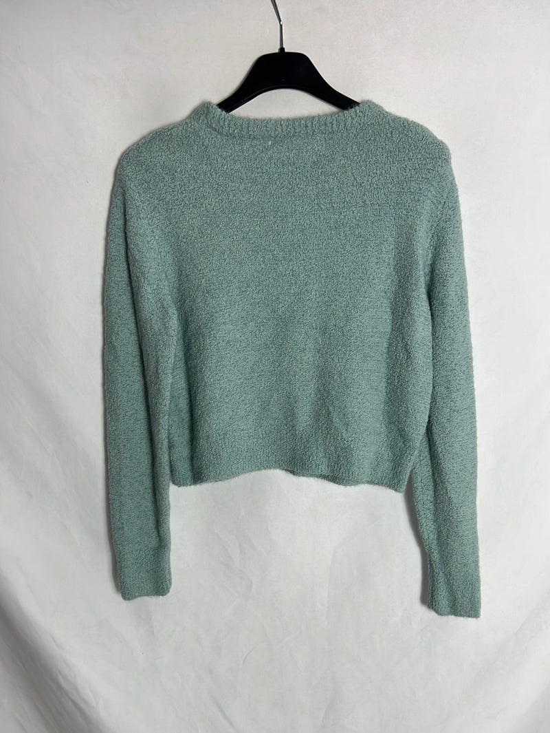 PULL&BEAR. Jersey corto textura azul claro. T S