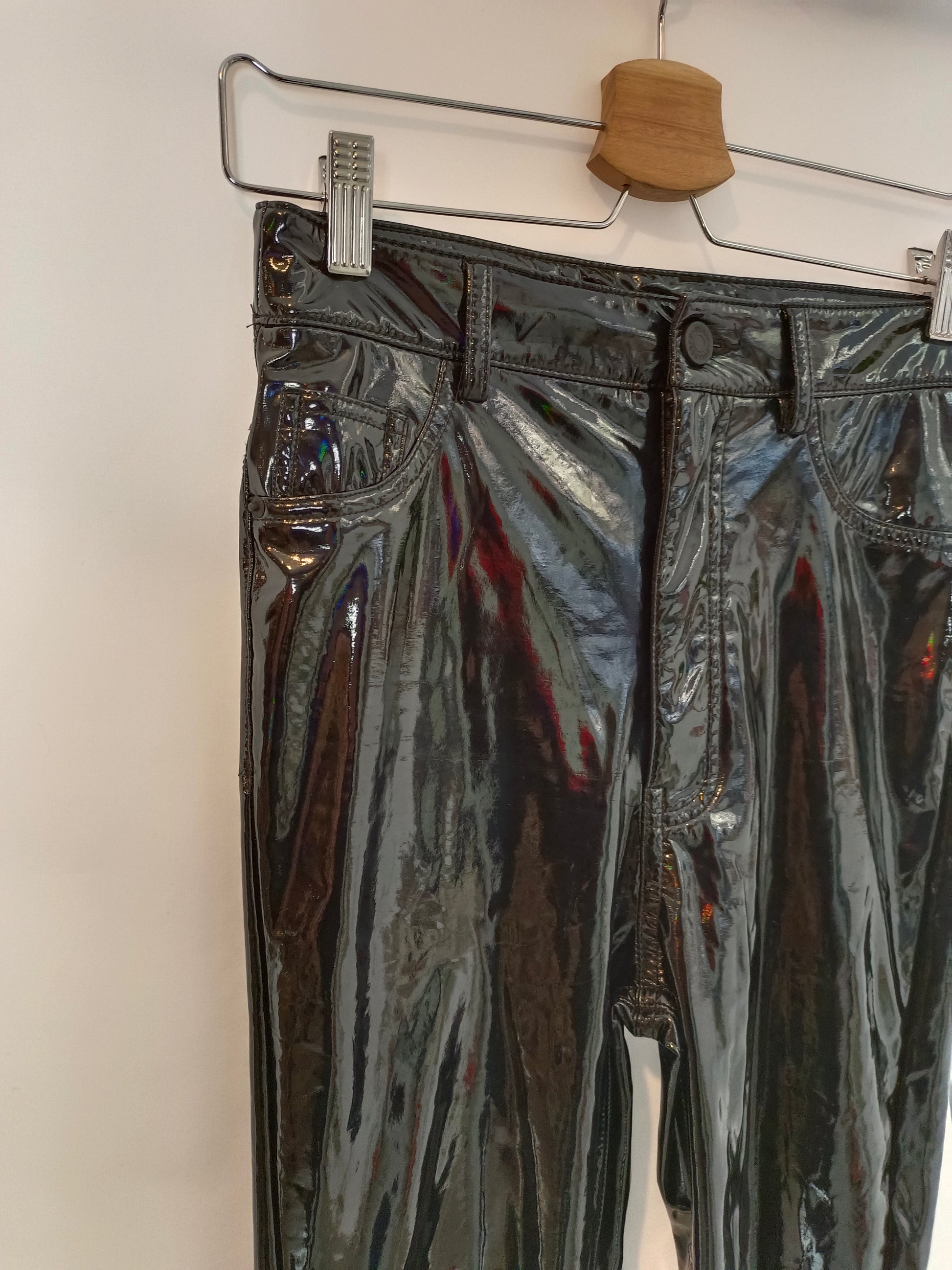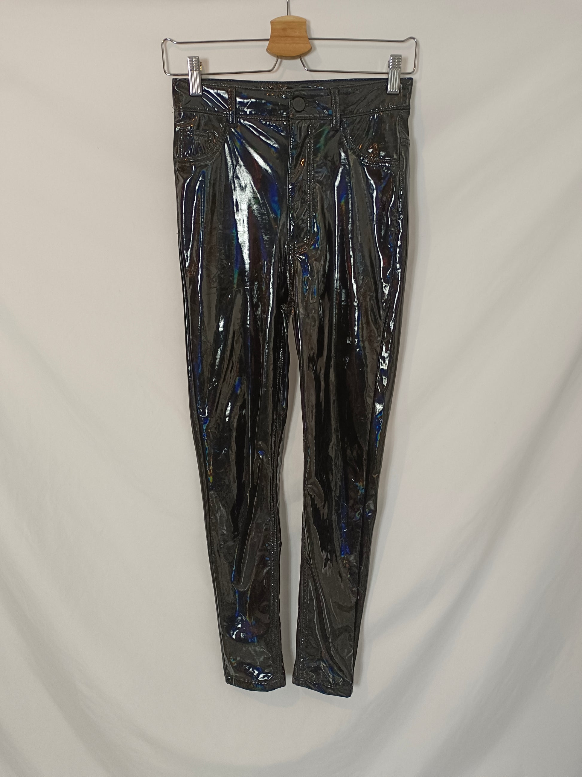PULL&BEAR. Pantalón negro vinilo T.36