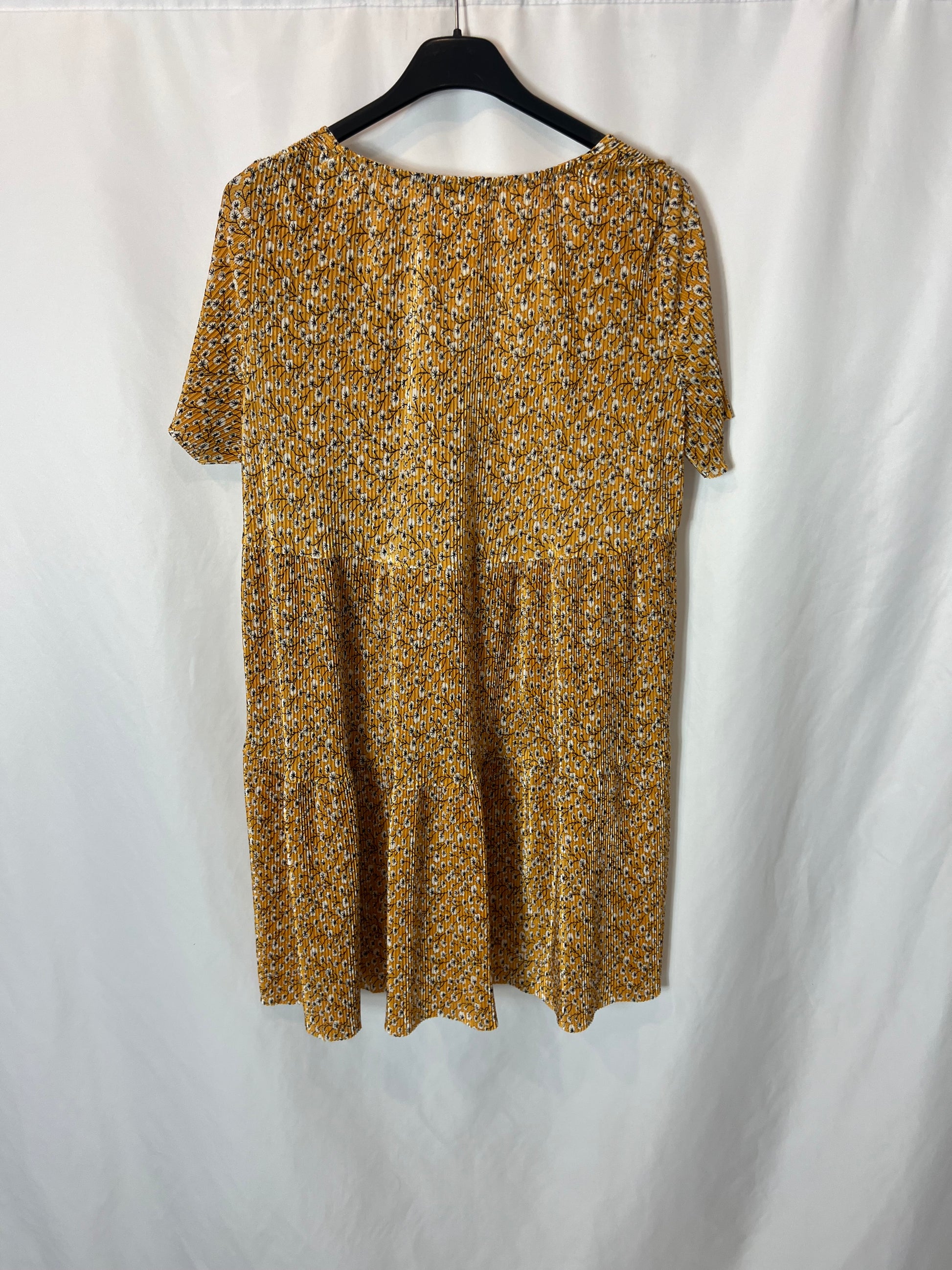vestido corto estampado de flores y tejido plisado. fluido y elástico.